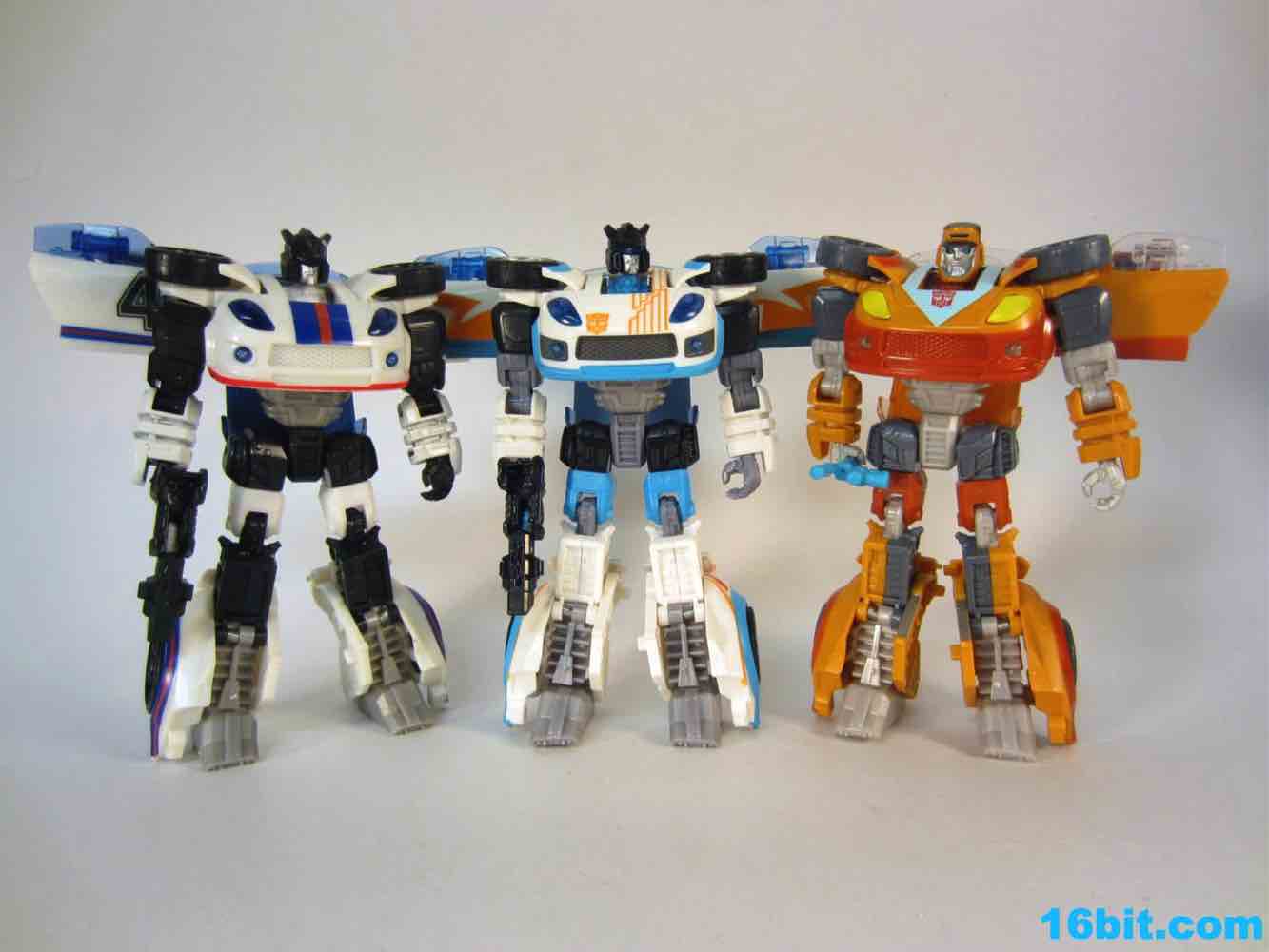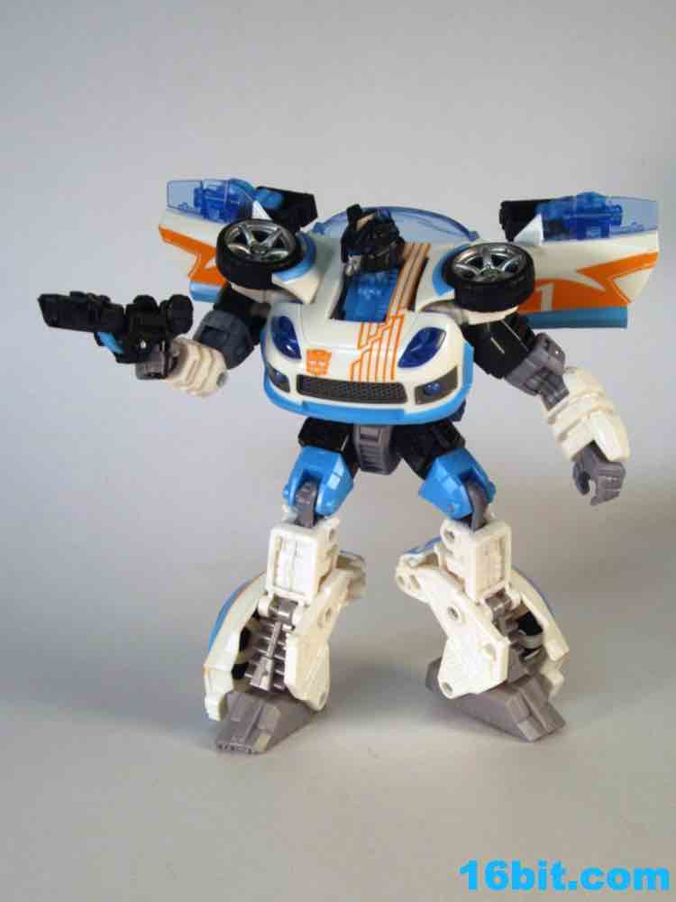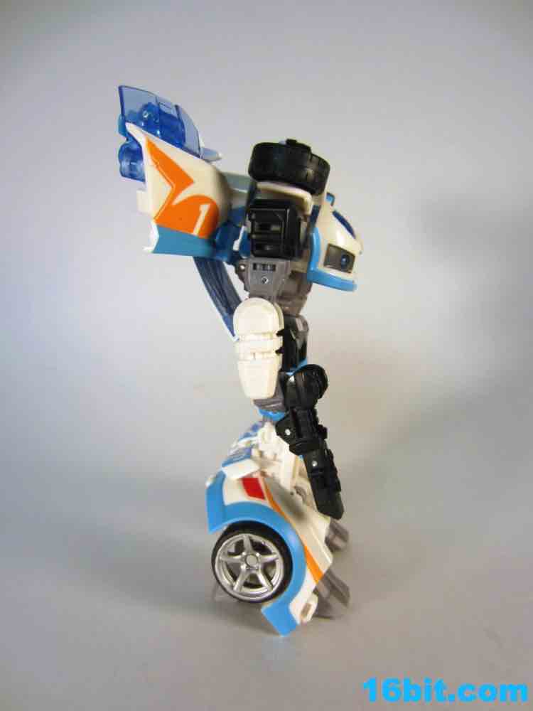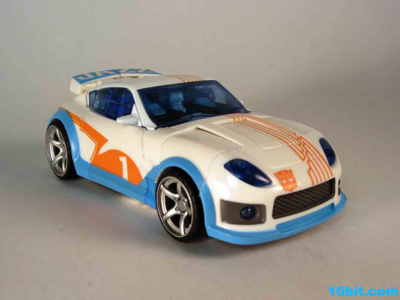 The name "Jazz" is written on the new figure's bumper and spoiler, so fans now sorta have a modernized Jazz for their G2 shelves while leaving the door open for a slavish recreation of the G2 figure in the future. Someone's gonna need to do it.