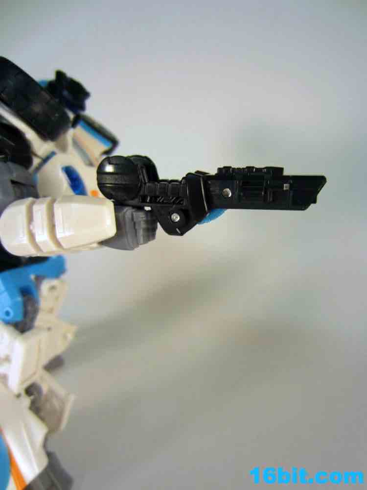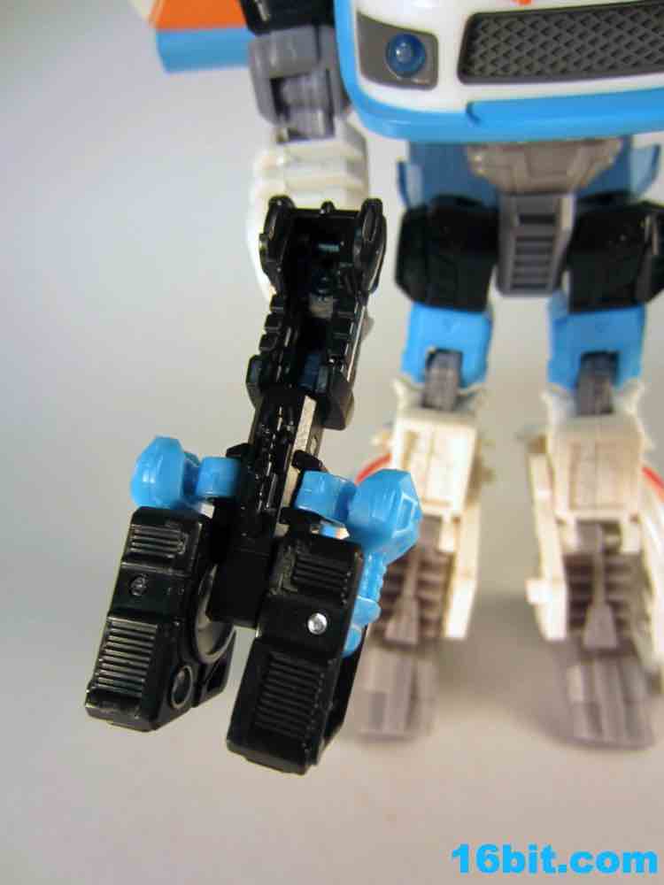 Arguably superior to the 2010 incarnation, the figure has molded off-white forearms, grey hands, and a liberal splashing of blue which brings out a lot of detail. I never noticed the sculpted triangles in his legs before this release, for example. The orange on his hood works great, as you get a bright symbol on his chest as well as the scale. I like how it looks, but in some respects it almost looks unfinished as the 1993 release seemed to have all the colors of the rainbow. This is almost subdued by comparison. Oh, and if this toy looks familiar to you go pull out your Cybertron Clocker from 2005.