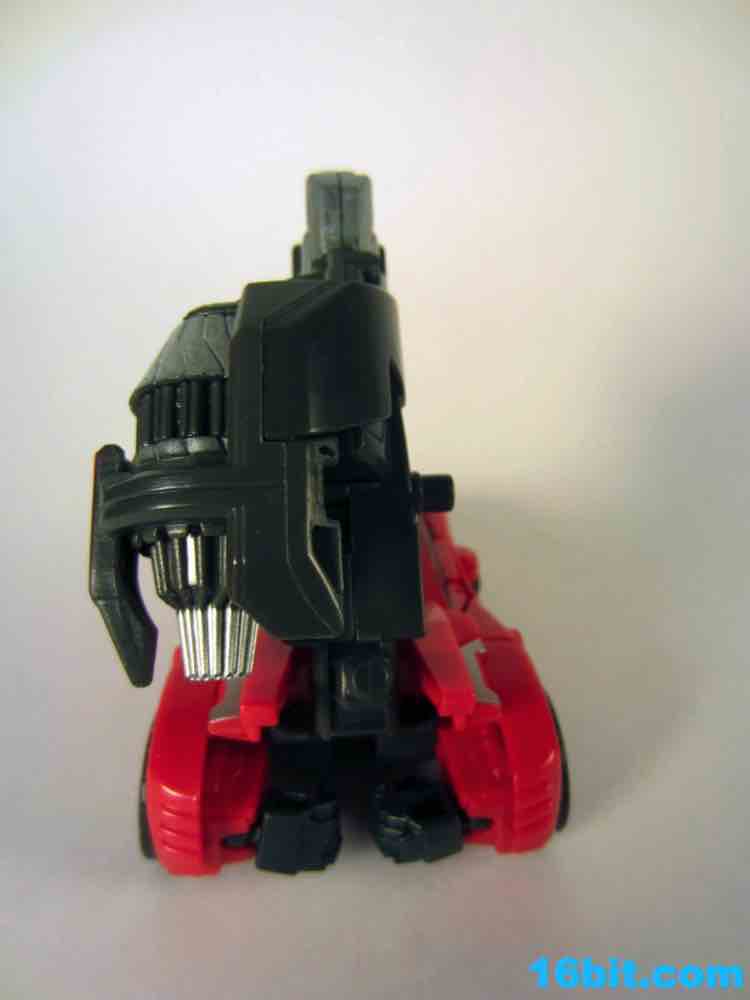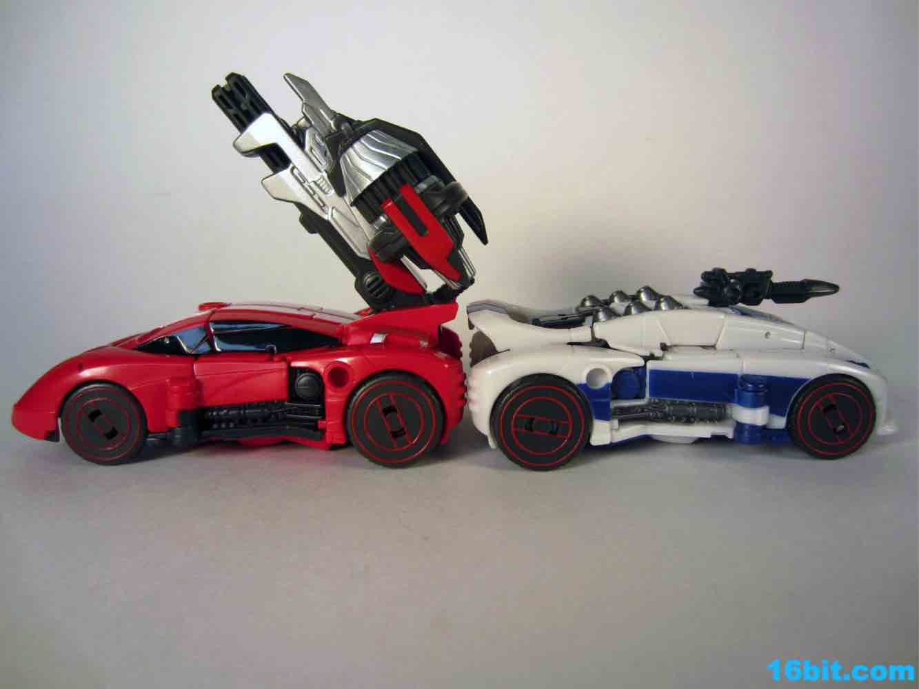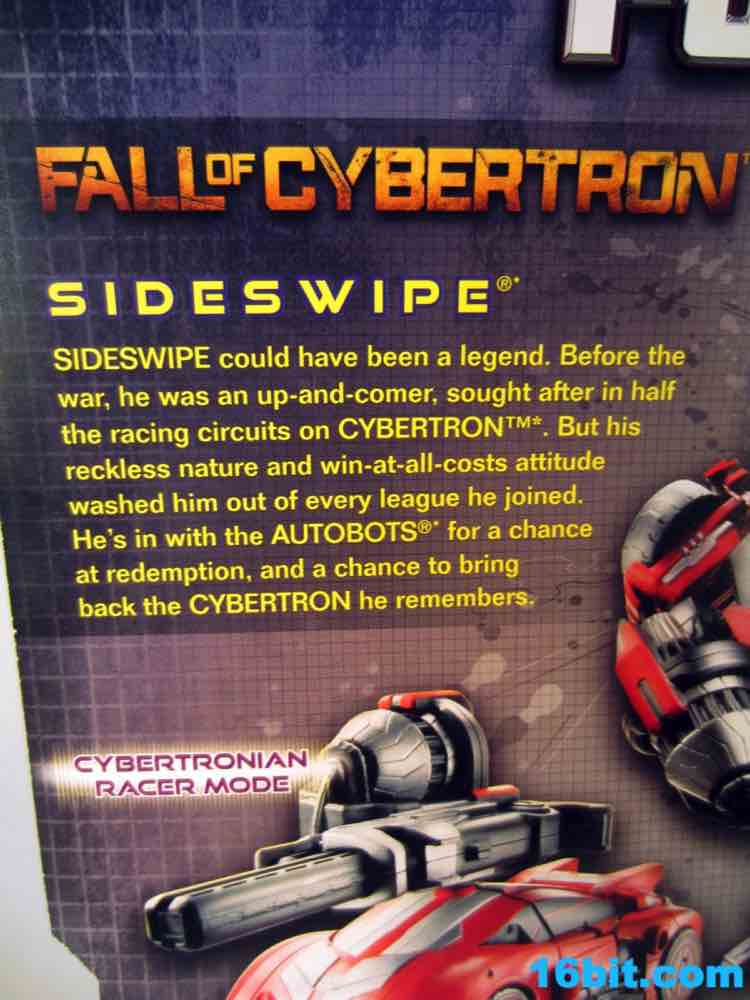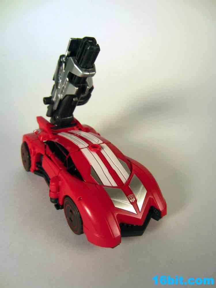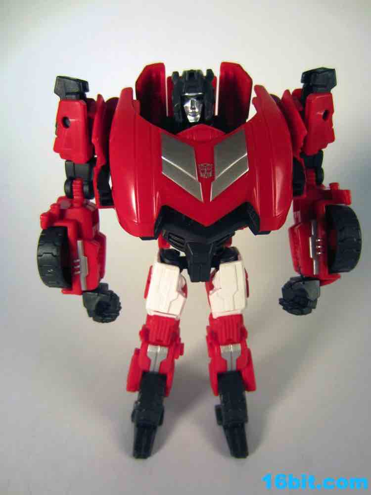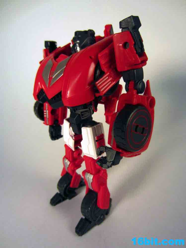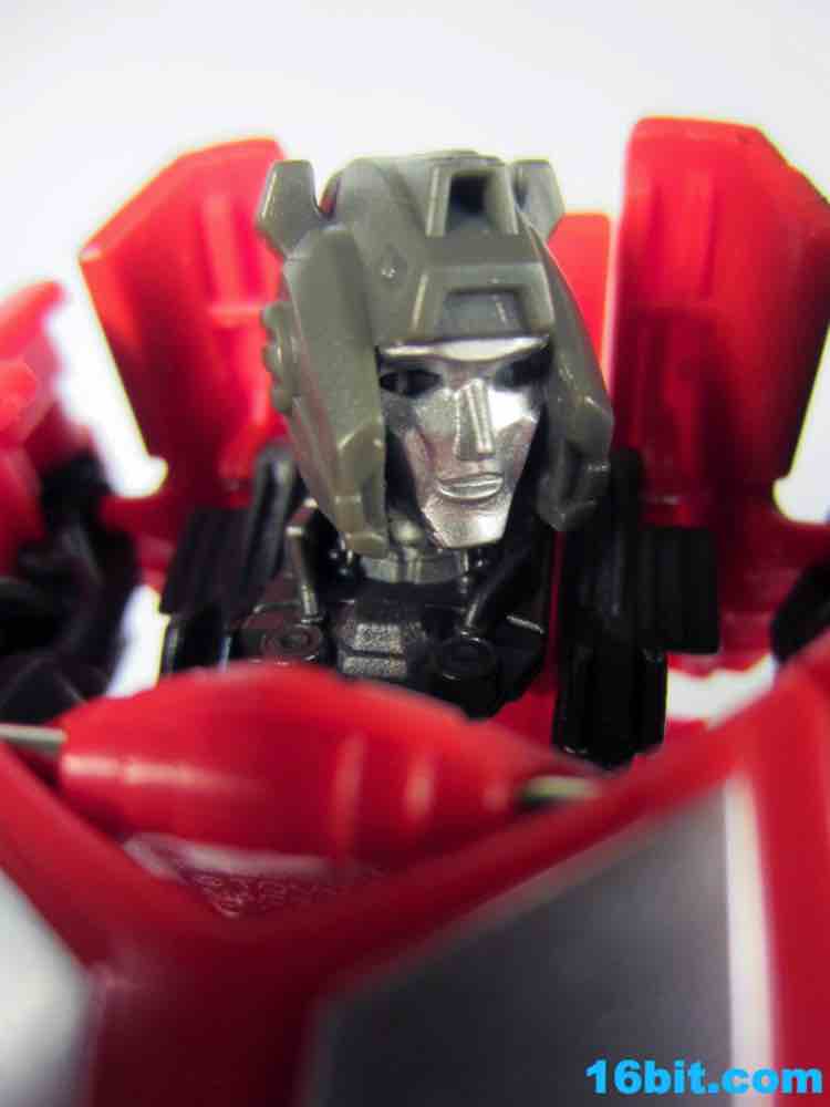 That's the good news. The bad news is that the transformation is basically the same, and my sample is a little worse. Tabbing Sideswipe's arms into the tabs on the car is difficult, and his arms also pop out a lot more. (For the record, my Jazz has yet to pop apart during transformation.) The process is pretty much the same as Jazz, but slightly less frustrating... save for the arm popping. It's still not an ideal transforming toy.
