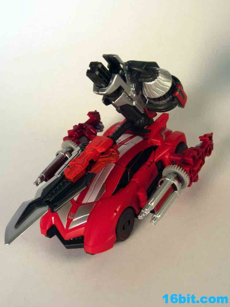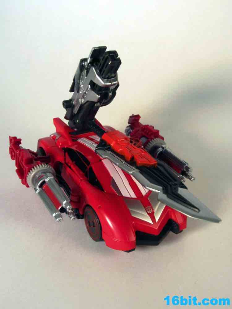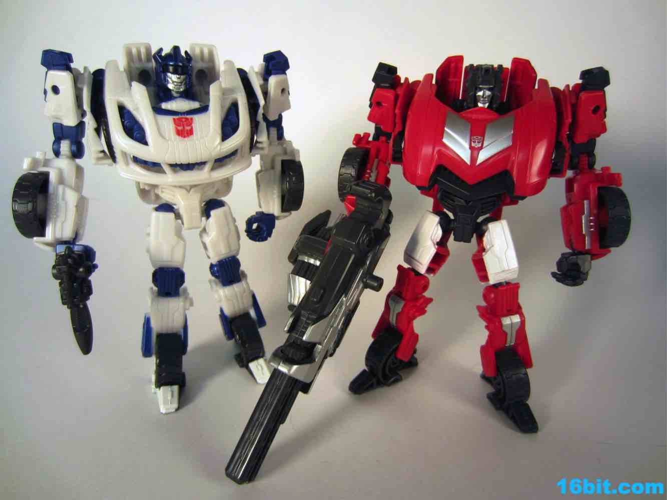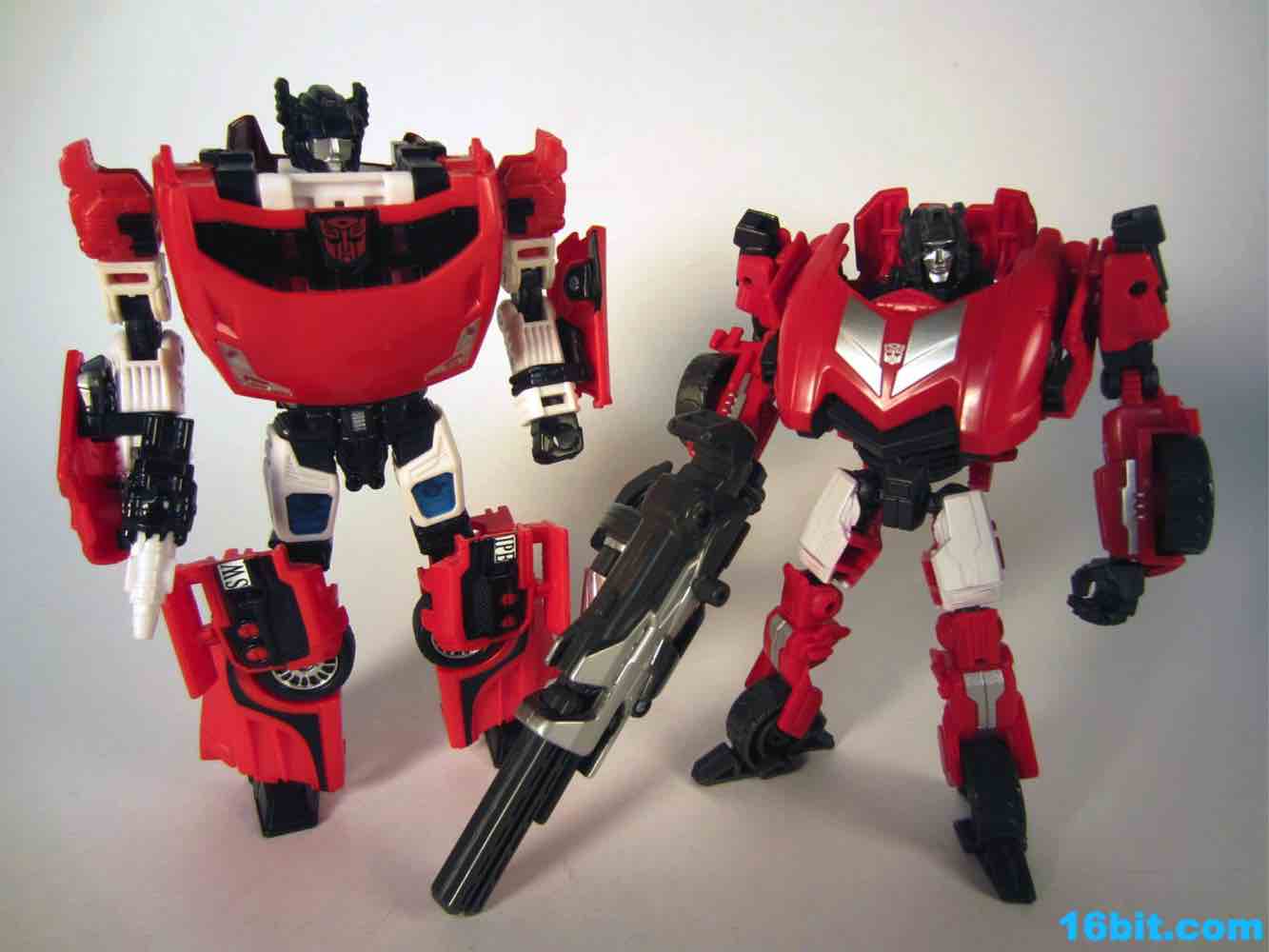 Not as crappy as you might think! Remolded from the questionable Jazz, Sideswipe is effectively the same toy with a new head, a new gun, and a new card body kit. Oh, and a terrible head paint job. (They left the eyes unpainted.) The toy manages to be interesting because it defies expectations and is something most Hasbro toys rarely are these days: fun. The large gun, dubbed the Path Blaster, adds a surprising amount of play to the otherwise ho-hum transforming toy which is probably the most extensive redeco we've seen on a deluxe mold. But let's be clear here... the reason you want this toy is for his gun. If that sounds insane, $15.99 for a deluxe toy and a giant weapon is a far cry from what you probably paid for your third party guns and axes over the last several years.