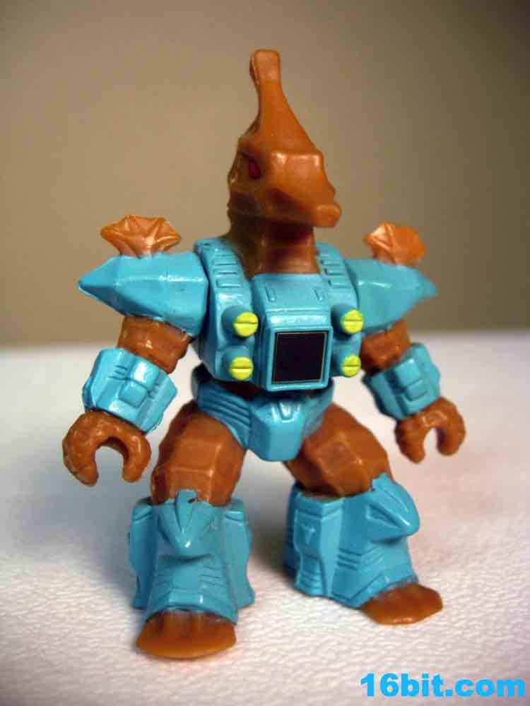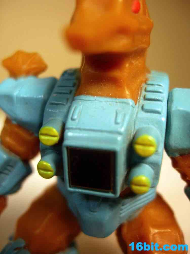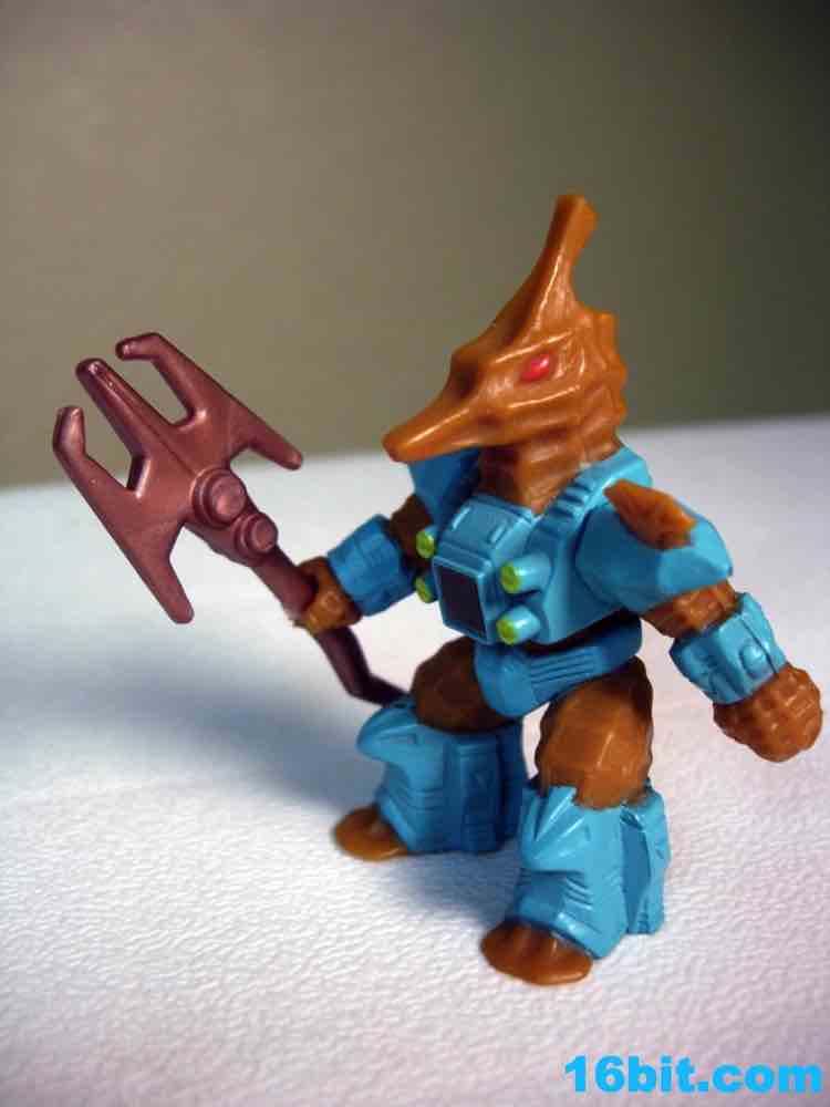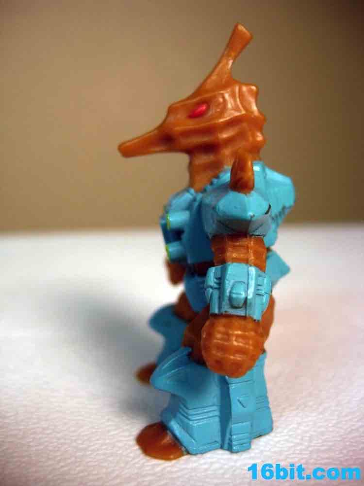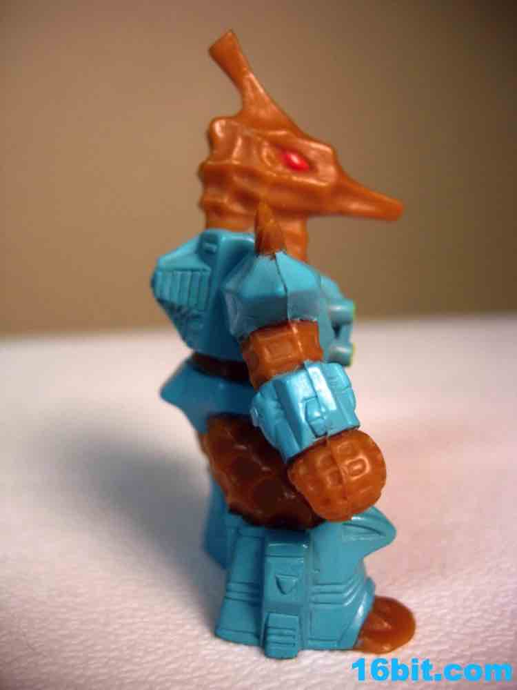 With two points of articulation, the figure has a heat-sensitive rubsign and the traditional robo man panties. His "feet" are exposed in his boots, and the outfit (when you get right down to it) has body coverage similar to that of Masters of the Universe. The real-life creature's fins are represented by fleshy growths on the shoulders, and unlike some other early figures Slasher Seahorse has textured hands. The armor is covered with panel lines and vents, which look great for really no good reason. His entire body has a fairly consistent and boxy texture, and this contrasts nicely with the fairly smooth look of pretty much the entire line. In other words, this is one of those figures that's not like the others.