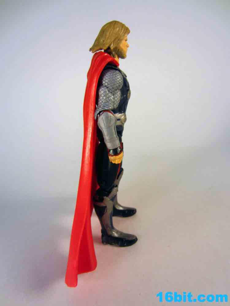 Since Hasbro's new direction on Marvel movie (and Clone Wars, and G.I. Joe movie) figures has been to reduce articulation, Thor gets to be good, but not great. It's streets ahead of the 1990s and early 2000s action figures out of Hasbro, but isn't as spectacular as recent Marvel Universe and Star Wars Vintage Collection offerings. Well, the sculpt is, and the deco is superb, but you don't get waist, wrist, or ankle articulation. You do, however, get 11 joints including some superb double-hip articulation, knees, ball-jointed elbows and shoulders, plus a ball-jointed neck. I can see leaving the waist joint out, as it may upset the flow of the costume design. I mean, look at the hips. It can happen. The figure has sufficient movement to stand or be posed in an action-oriented manner and has no problems holding his hammer.