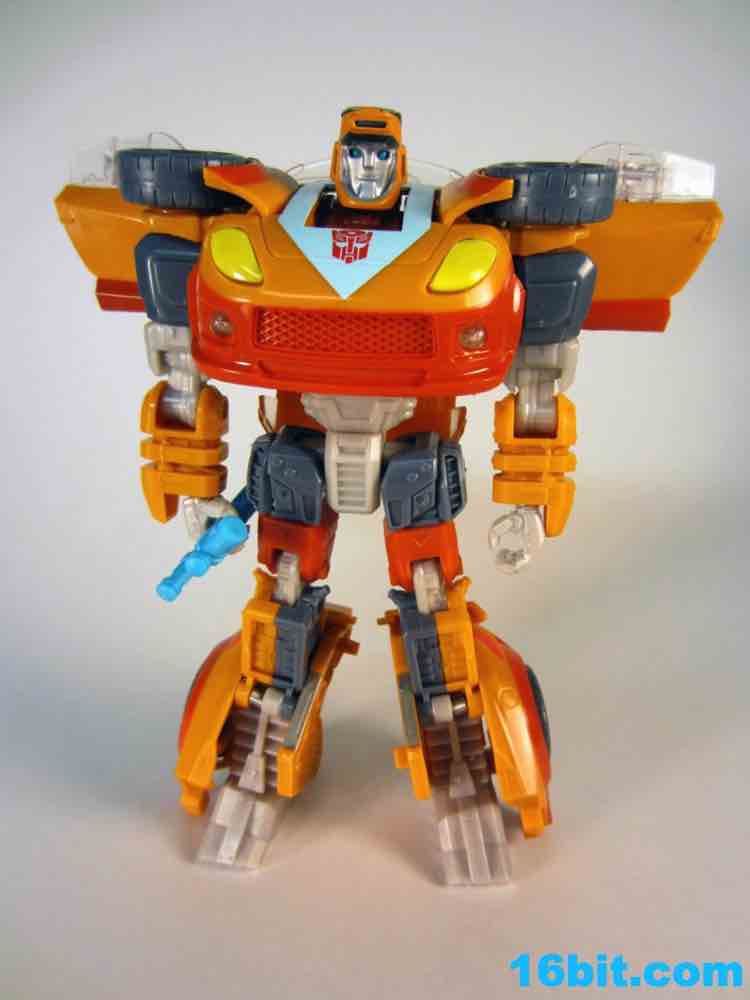 The changing design of Wheelie is pretty nifty in that the futuristic "2005" minibots toy works well as a series of other vehicles, like this sporty car or an older hatchback. Wheelie seems to get a little better with each new release, and even though it's $15 or so it's worth picking up. Particularly since the Legends toy is pretty expensive these days. The Legends toy is $15-$30... and at $15 I'd say it's worth it. The Deluxe car seen here is more than a deal at $15, so buy it now because you'll be paying more for it later.