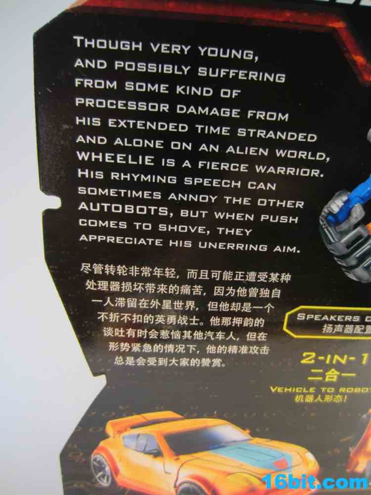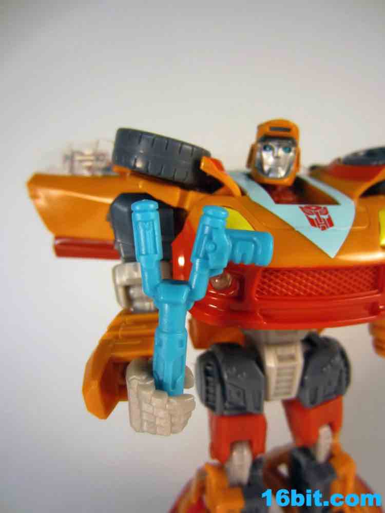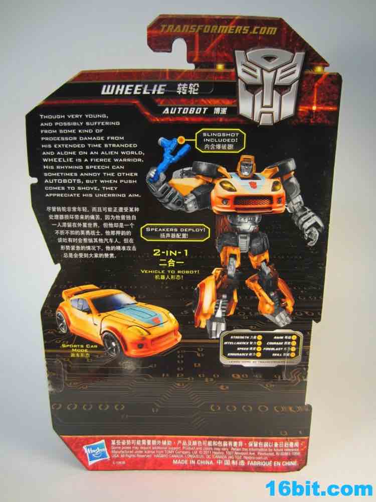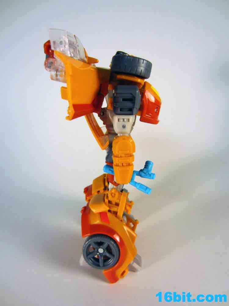 When I first saw pictures of this Wheelie I went from confused to delighted and back again a few times. The body had just been released as Jazz (and subsequently a few other figures) so it was a little strange seeing one of the larger recent deluxe Autobot molds done as one of the tiniest Autobots to appear in the original cartoons. Of course, this is all dispelled pretty quickly since the toy looks great and the character fits with the mold quite nicely.
