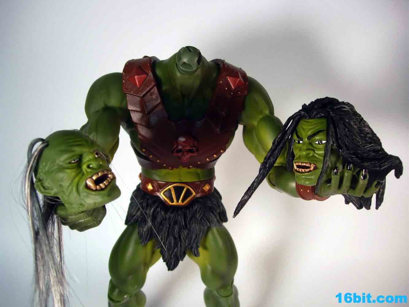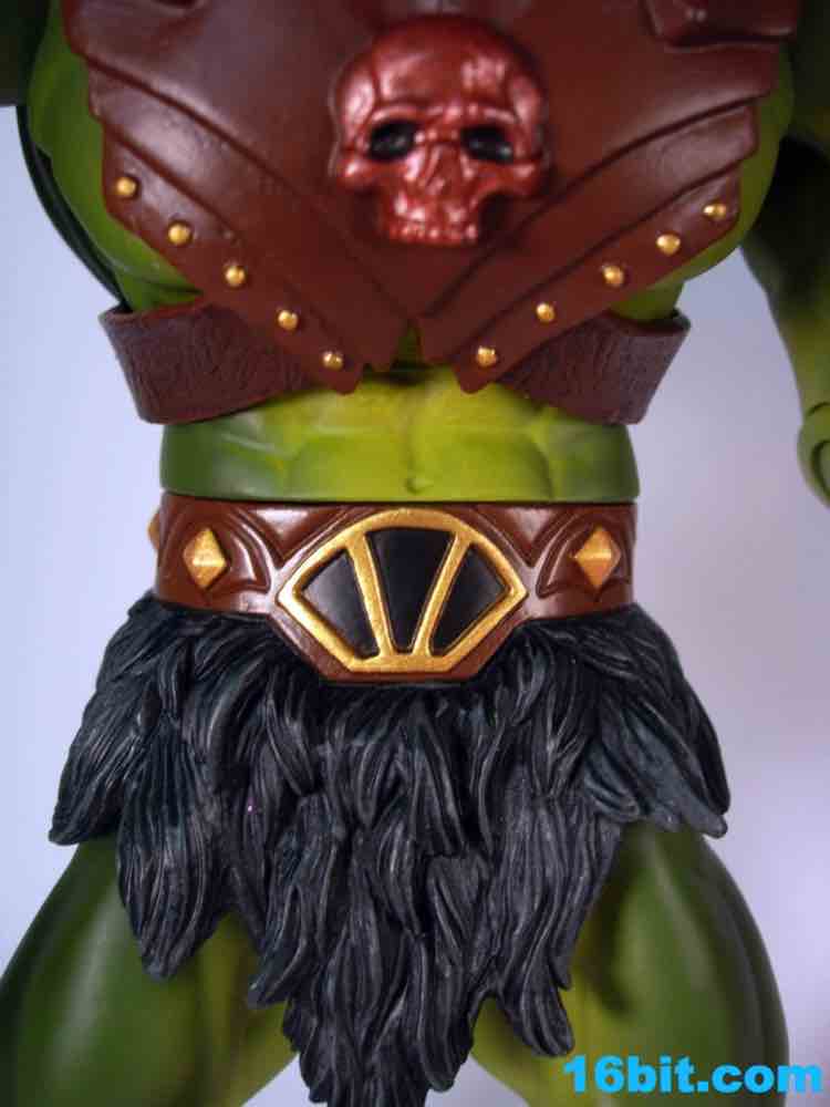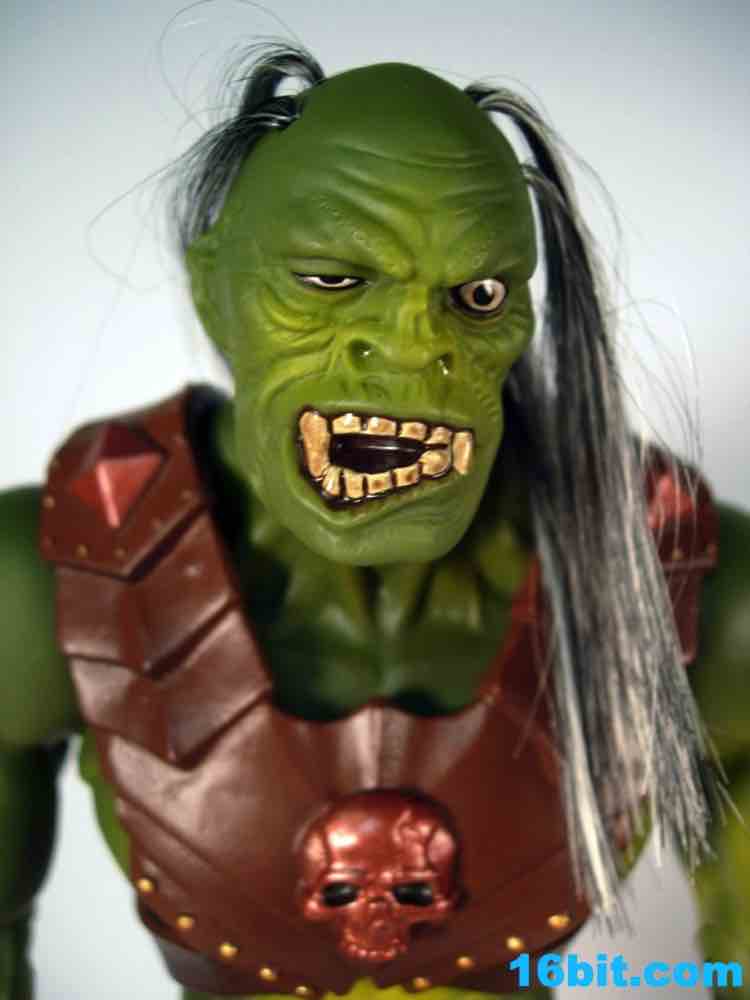 As of late last year, this one was selling for about $30 before shipping. That's actually about perfect for this toy, if not a little cheap. His deco is pretty great, with light to dark green skin and nifty faux-bronze armor with a skull on it. Quality stuff. Since I have no real emotional connection to the figure (it showed up in the mail) it's just a neat, big guy who hangs around with my other bad guys in the basement. I bet I'd like it more if it had an arm-smashing action or something, but it is a nifty, fantastical creature to keep around the toy box.
