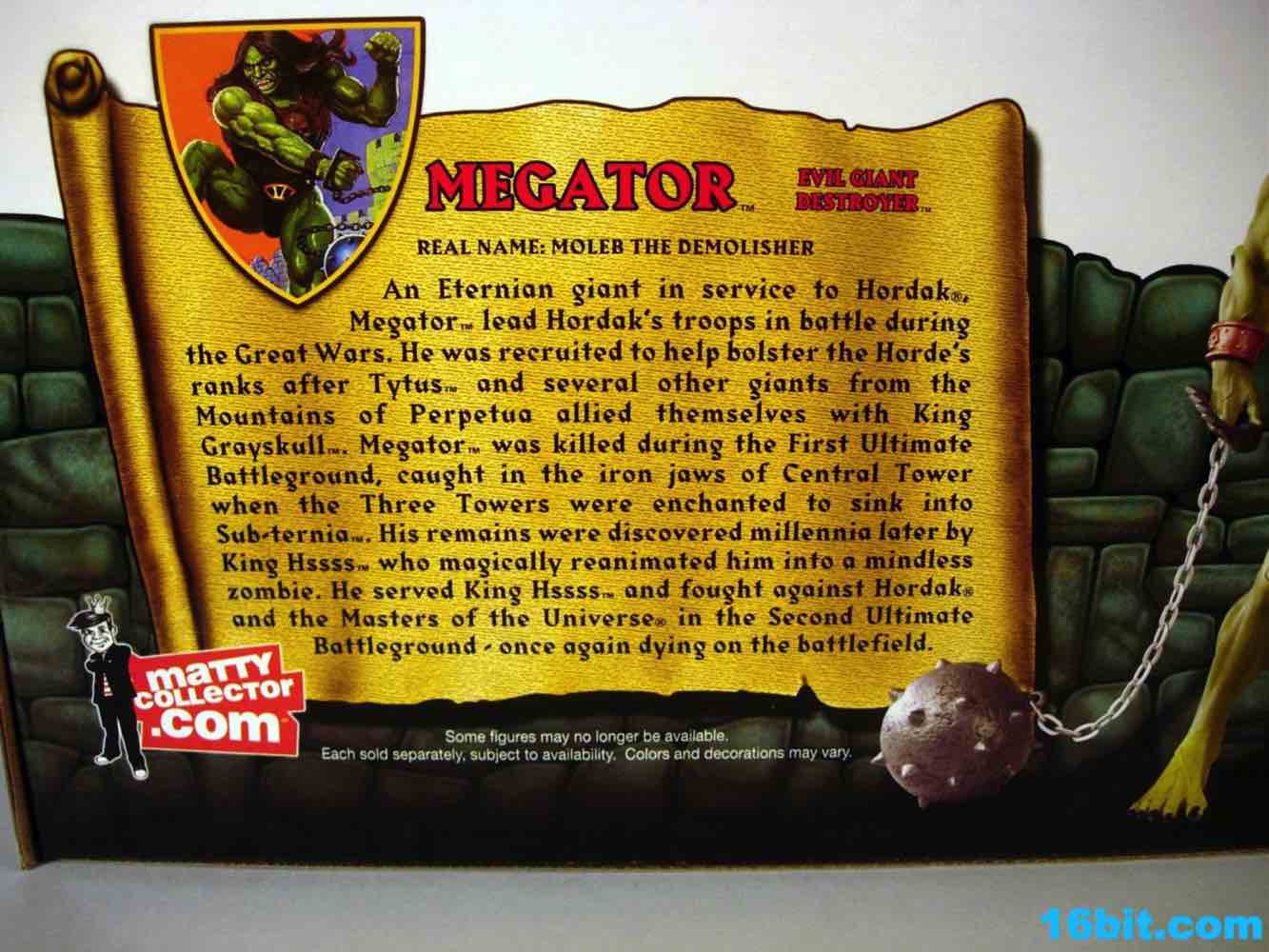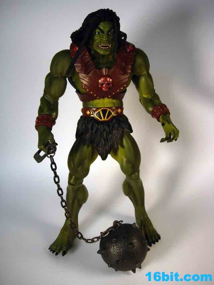 The body shares parts with Tytus and last year's Procrustus, but Megator and Tytus are basically the 1.0 of the larger body. The figure sports about 12 points of articulation, lacking ankles and swivel biceps. I think I'm supposed to tell you that this is an outrage but I didn't really notice they were missing, as the figure is basically a "pop it out of the box and pose" figure over an "action" figure. It stands nicely, and has no problem holding the ball-and-chain in his right hand. The cool thing is the chain is actually metal.