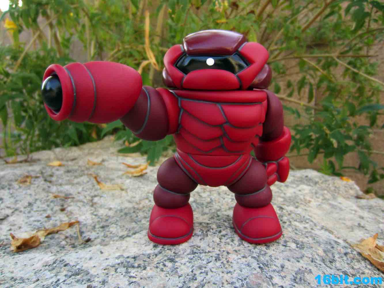 With a limit of 2 per customer, the Syclodoc Neutralizer sold out in about 4 minutes. This doesn't seem to be too abnormal, as any new pieces from Onell Design tend to fly off the digital shelves pretty dang fast. This one builds on the classic vinyl Armodoc and adds a new color with a new head sculpt, inspired at least a little bit by Gundam's Zaku. The Armodoc now comes with a default Syclodoc noggin, which has a big black eye with a white dot in the center.