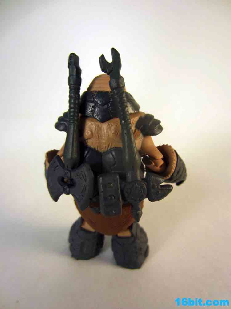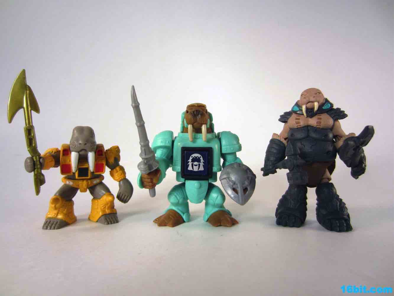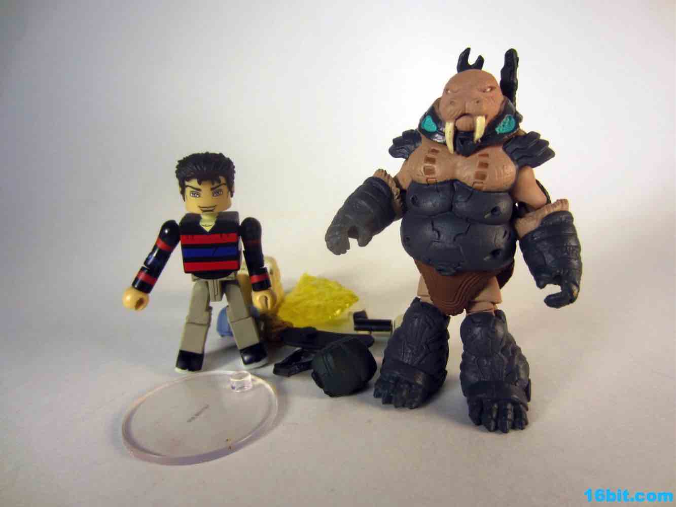 After having bought/tracked down/begged for the 4 Gators, 6 Vorins (including one at great expense), and a Zik, you can bet I was thrilled to see an updated Walrus. Who doesn't love a nice Walrus toy? Gruntos has a big beefy sculpt with tons of new parts, with arm, leg, foot, hand, and body pieces covering up the fact there's a Minimates body under there. Were it not for the visible elbow joints, you might not even realize it was under there. The head resembles the comic with a cracked tusk, old-school yellow eyes, a little scarring, and some generally cute walrus wrinkle detailing. There's even a painted walrus torso under the armor with tattoos! The flesh color of the figure is painted-over flesh plastic, which gives the figure a different texture and a more expensive feel. (And I'm sure it cost Diamond a little more.)