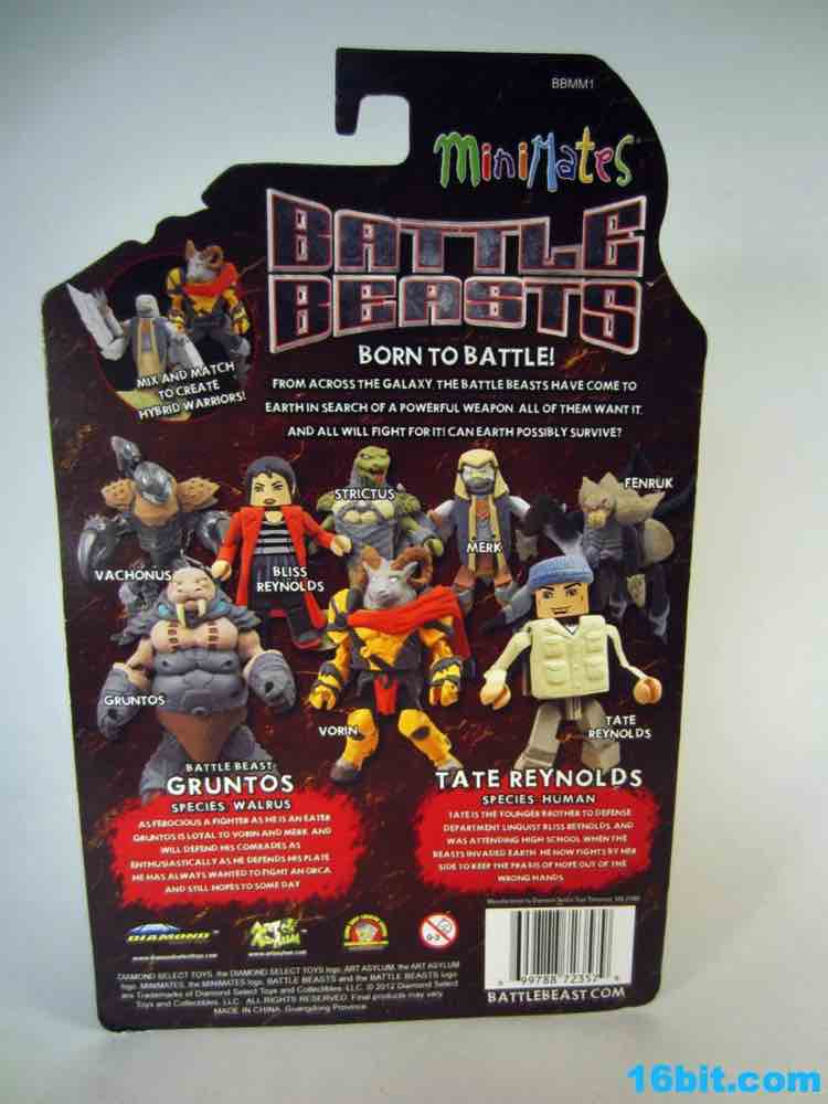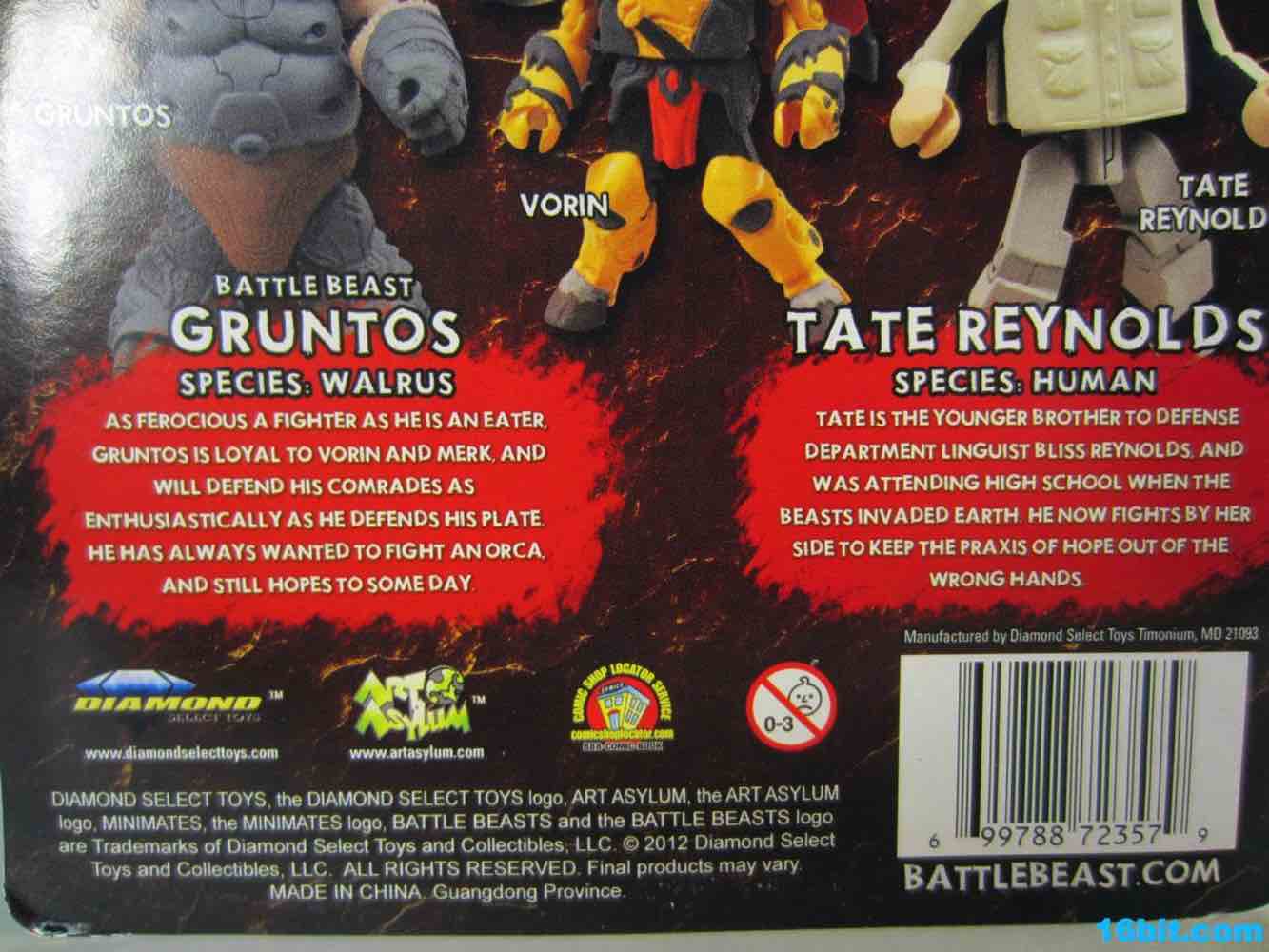 There are few lines I was anticipating as much as the Battle Beasts revival, particularly after the long wait. My readers know I love Battle Beasts and was on board with the Minimates concept since day 1. Gruntos the Walrus & Tate Reynolds were a long time coming, and I nagged the ever-living daylights out of the very nice and patient people at Diamond Select Toys pretty much since that Gator came out 3 years ago last month. This set is almost a thing of beauty, but a good factory can make something great, and sometimes the end result is what you asked for, sort of, but just a tiny bit off enough to cause play problems. I wrote this about a month ago so I could sit on it and edit it because I really do like the designs, as they're attractive little toys and the packaging looks good. When you open them, you're going to have to do some fidgeting... a few of the pieces don't quite fit together out of the box without extra help (and/or brute force.) You'll get a ton of parts and gear, so there's a few items you'll want to keep out to play with and a few others which will go into your accessories bin.