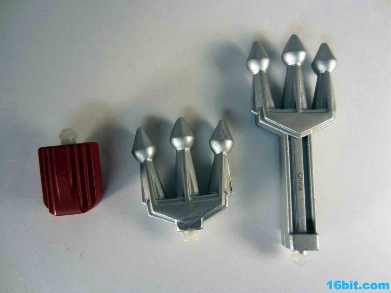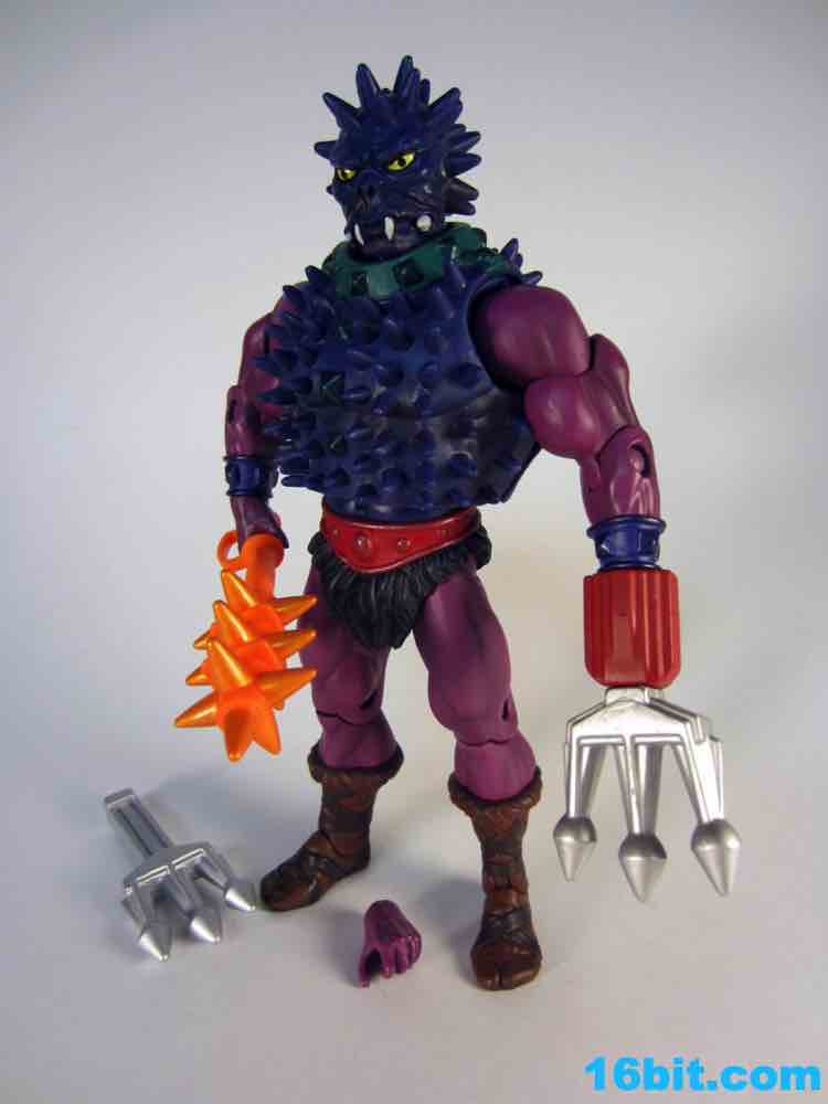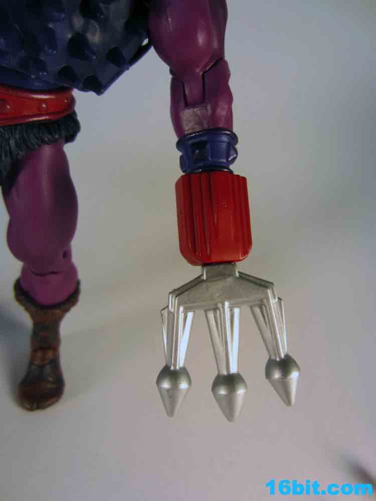 An update of one of the later figures, the original Spikor's action feature was meddled with here and recreated using swappable, removable pieces. You can pop the weapon off his arm and replace it with a standard hand, or a longer silver "arm" pitchfork for a little variety.