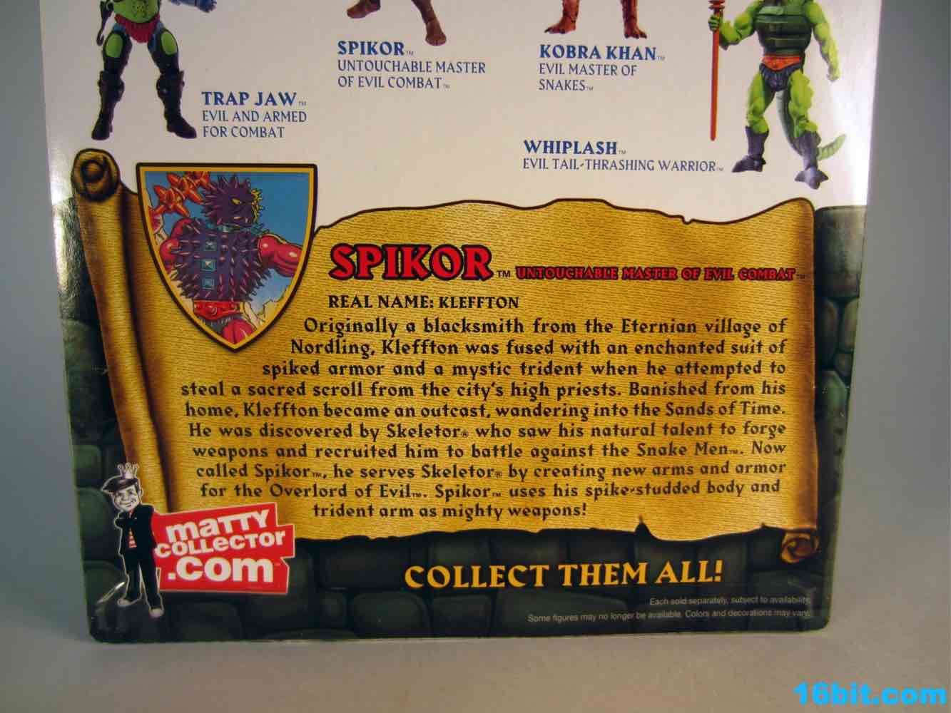 Here's a fun fact. In 1996, a Star Wars comic book had a character called "Spiker" who is very similarly colored and styled with Masters of the Universe's Spikor. The sci-fi character was a blue-skinned, armored biker while the Eternian villain has a very spiky head with armor and a pitchfork arm of sorts.
