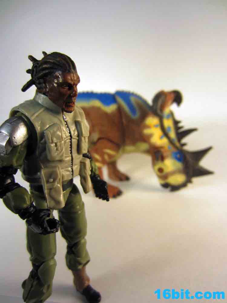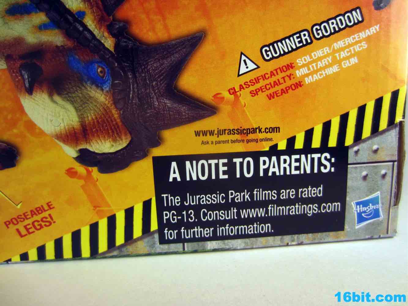 It's worth noting that the set itself is incredibly odd on so many levels, not the least of which is that it came with little publicity, and has absolutely nothing to do with the movies. The human characters are (as far as I can tell) completely new and these dinosaurs were not a part of the films. So why are they here? Common collector wisdom says a Jurassic Park 3D tie-in to that movie's April 5 release date. Where's Jeff Goldblum? Or the T-Rex? Or Newman? Or Samuel L. Jackson? (I'm being facetious because honestly, Gunner Gordon is more interesting and mostly bizarre.)