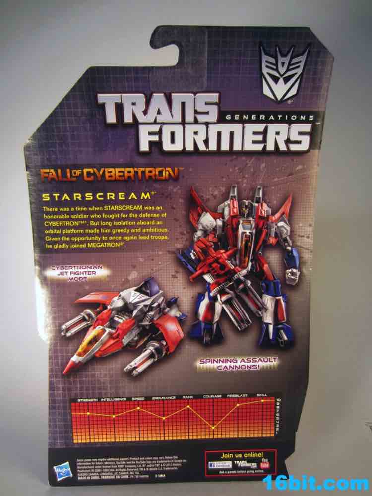 I have a hard time saying no to deluxe Starscream toys. Well, the ones that aren't from the movie, anyway. For years Hasbro has been approaching the tetra fighter seen on Cybertron from the very first episode of the very first cartoon, and they got pretty close with the Cybertron/Galaxy Force incarnation around 2005. This new release builds on that (and other) concepts, giving us a pretty impressive toy which mixes modern Transformers-iness with a little G1 mixed in for good measure. For $10, you would punch your own grandmother in the jaw to get this toy. Unfortunately it's $16, so maybe you'd just punch a friend you don't much care for.
