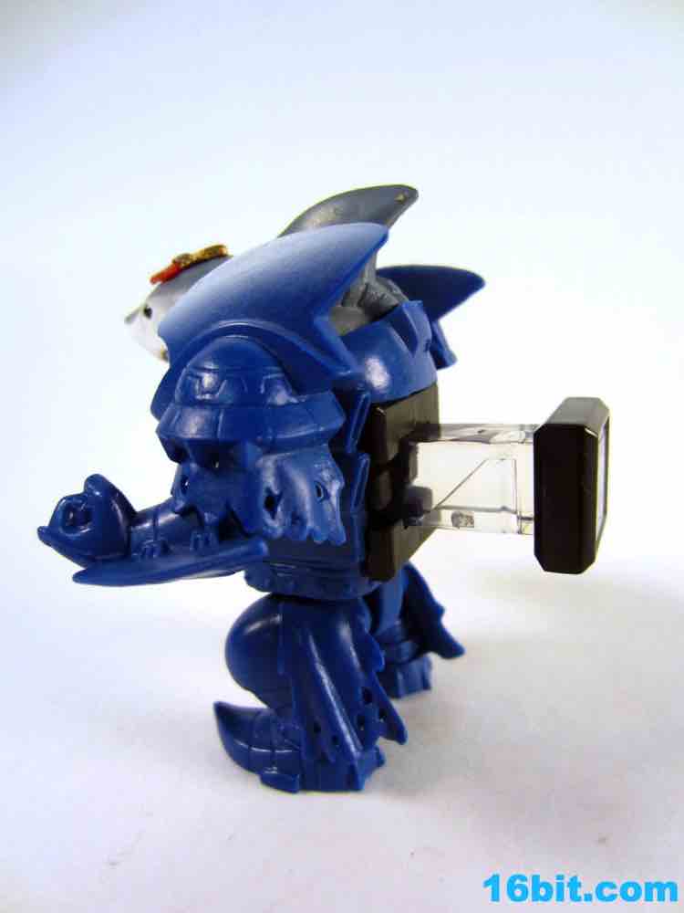 The capsule toys come to you in pieces. Killer Shark's legs are separate, so you plug those on and then you realize none of his four limbs are articulated. This isn't a big problem for me as the figure, oddly, is improved over the 3-pack release in the head. The rest of the figure, not so much, but the pose is solid and you can tell that the separate pieces used to assemble the head are now a single part. So there's no unslightly line where the pieces are fused together on his head now.