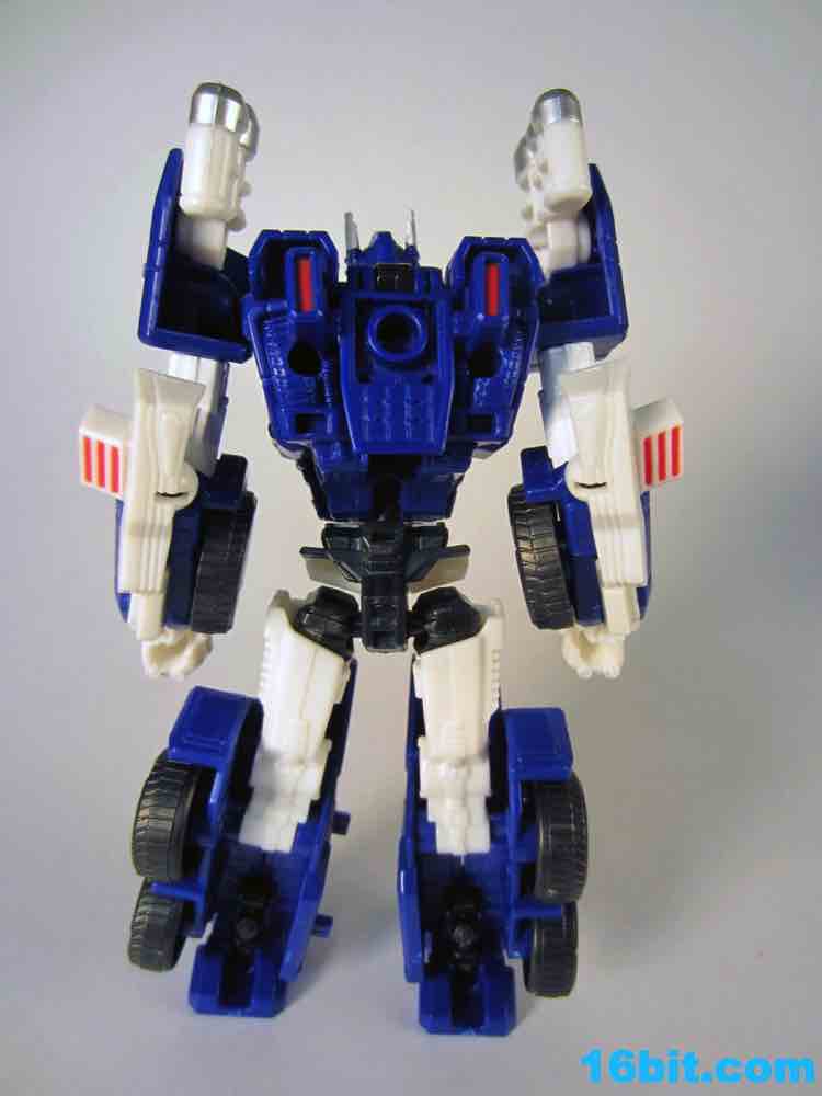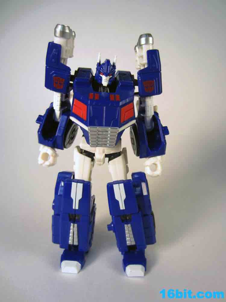 The figure in any mode doesn't match Ultra Magnus from the video games, as Hasbro opted to reuse an Optimus mold instead. I'm OK with this, mostly because I really like the mold as it is. Magnus the truck rolls fairly well and transforms cleanly. Added paint applications on his bumper, back, smokestacks, feet, and elsewhere really bring the figure to life and makes Optimus prime look like a relative cheapskate. It's obvious Hasbro saved its shined nickels and loose change from Optimus Prime and threw all that extra money Ultra Magnus' way.