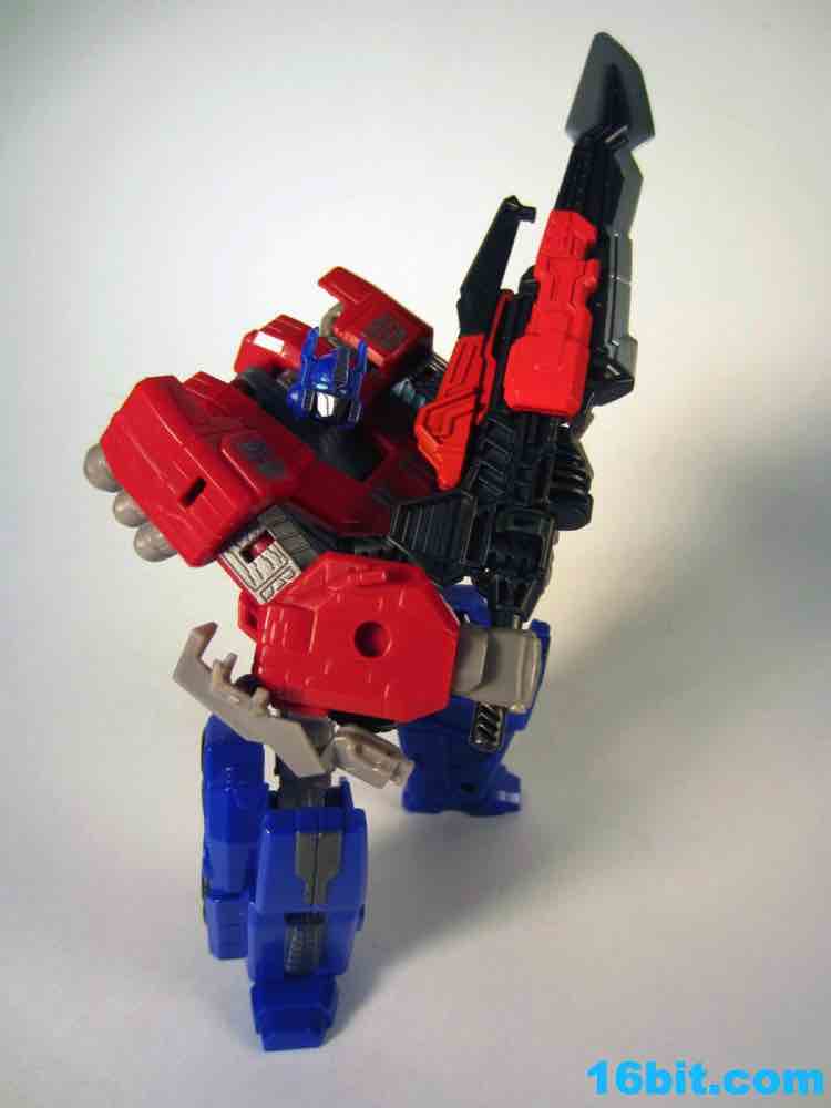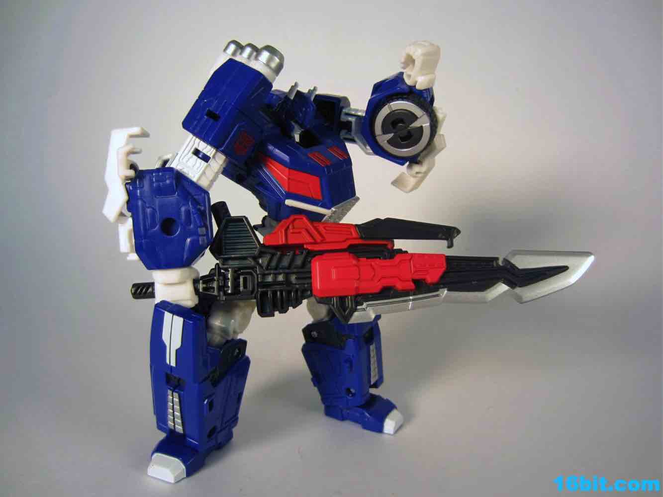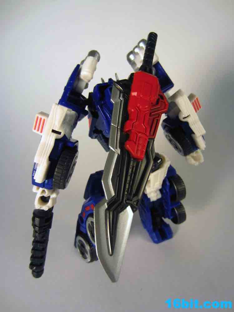 At a hair over 5-inches tall, anyone who got Optimus Prime knows what to expect. New deco, new head, and 3 more "sword" pieces which are actually amazingly compelling accessories from an adult perspective. As a kid I don't think I'd like it, but they seem like Hasbro trying to address the Asian accessory aftermarket, where some companies make a sword or a gun and charge $30 for it... when the figure itself from Hasbro was about $12. The big accessory also makes the figure seem a little more worth the increasing asking price for a deluxe as of late, ut let's go back to the figure first.