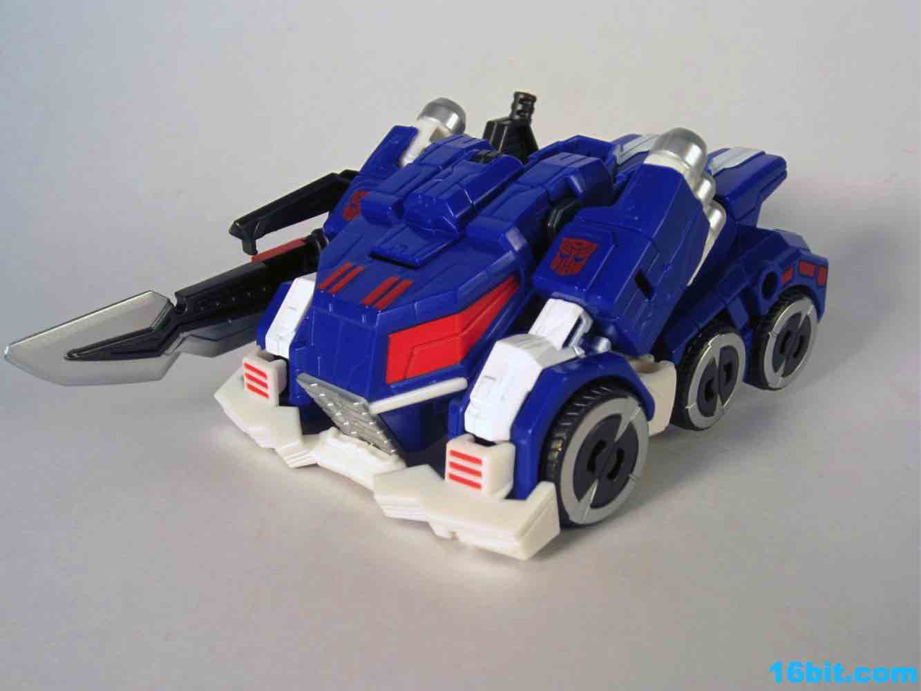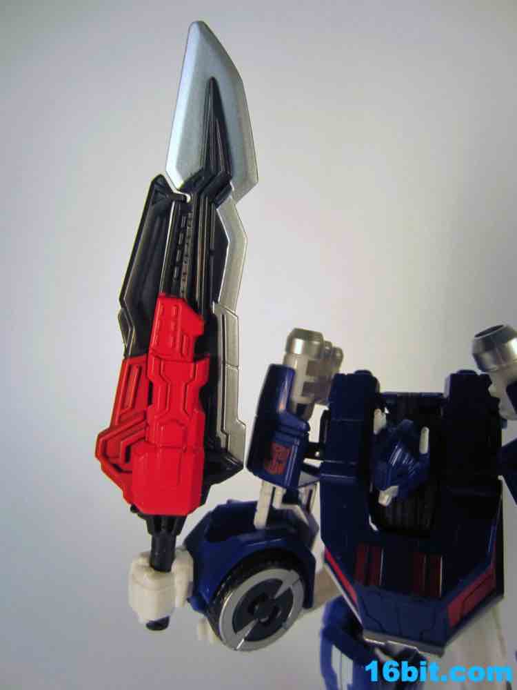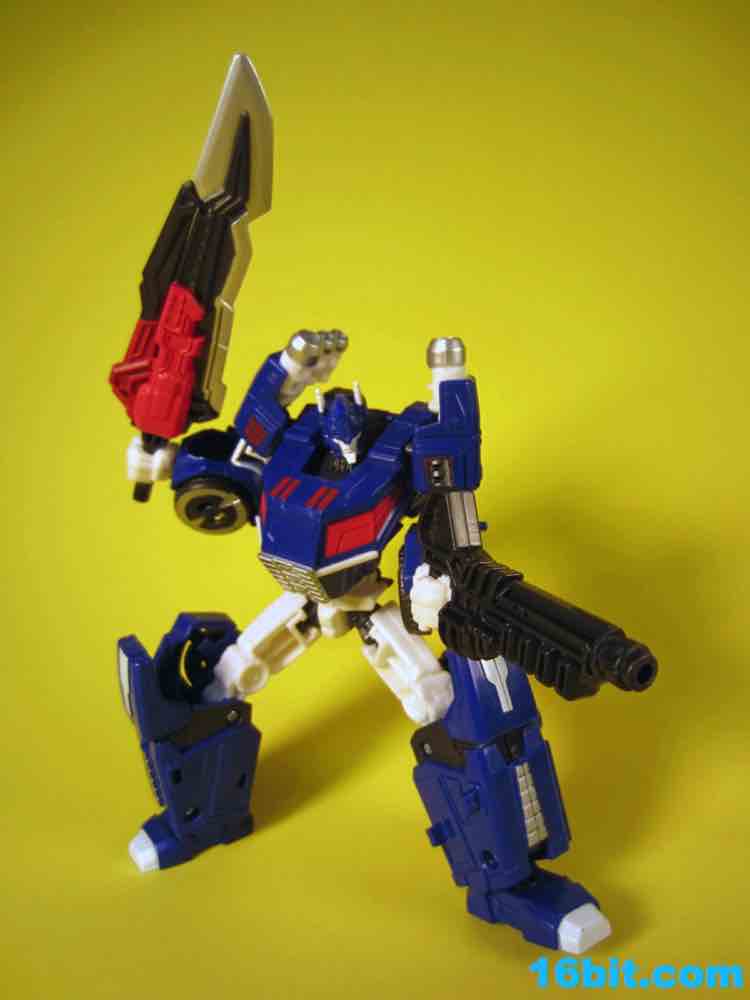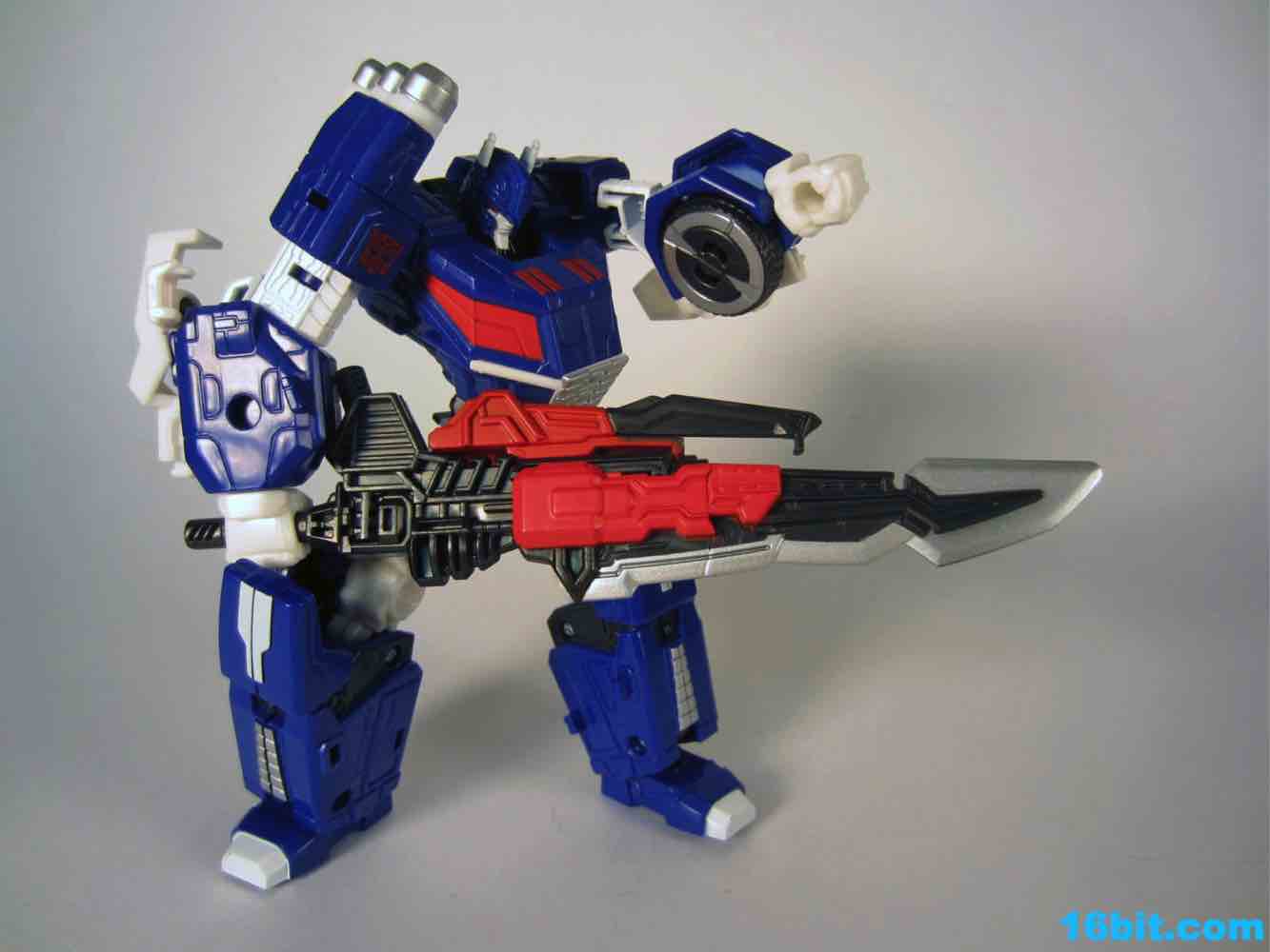 At a hair over 5-inches tall, anyone who got Optimus Prime knows what to expect. New deco, new head, and 3 more "sword" pieces which are actually amazingly compelling accessories from an adult perspective. As a kid I don't think I'd like it, but they seem like Hasbro trying to address the Asian accessory aftermarket, where some companies make a sword or a gun and charge $30 for it... when the figure itself from Hasbro was about $12. The big accessory also makes the figure seem a little more worth the increasing asking price for a deluxe as of late, ut let's go back to the figure first.