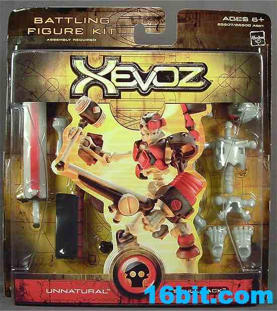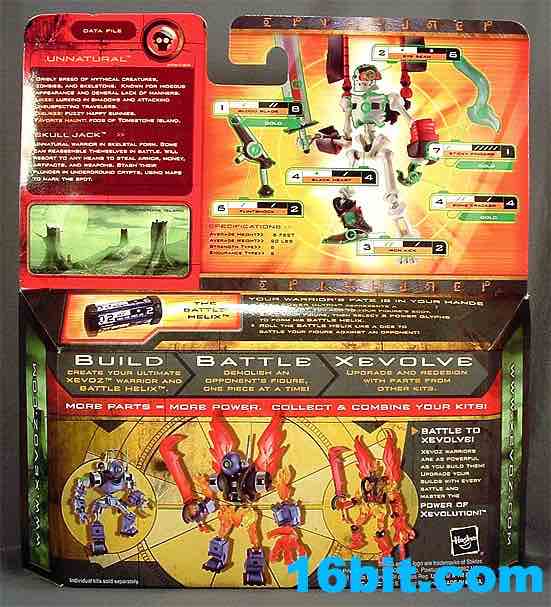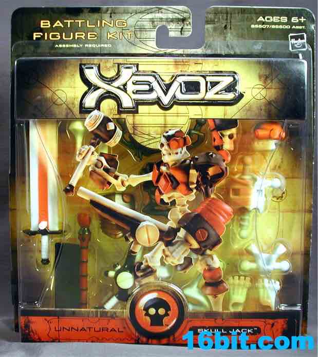 "Skull Jack is one of the first three Xevoz sets released in January 2004. It has numerous pieces that can create several different figures, such as a basic skeleton or a cybernetic skeleton pirate. Versatile and given many accessories, this set is worth the money if you can find it. $7 at most stores, available as low as $2.00 on extreme Wal-Mart clearances."