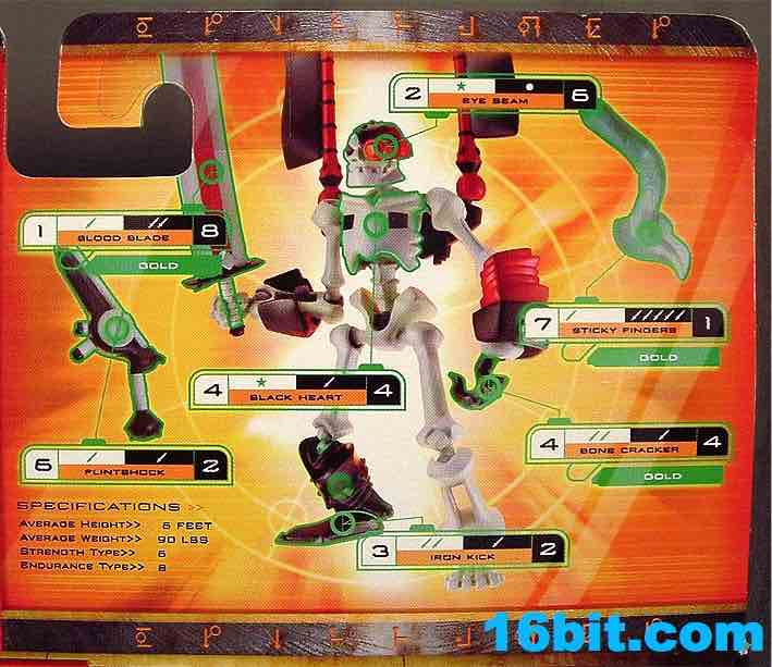 Item No.: Asst. 85500 No. 85507 Manufacturer:Hasbro Includes:Sticker sheet and a ton of parts Action Feature:Swappable parts Retail:$7.99 Availability: January 2004 Other: The Skeleton bits were repainted for Tomb Wraith and Grim Skull figures