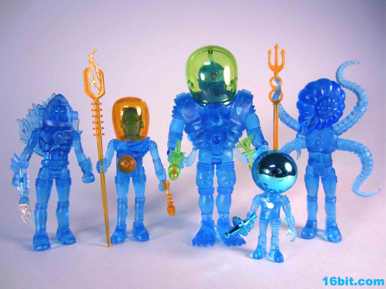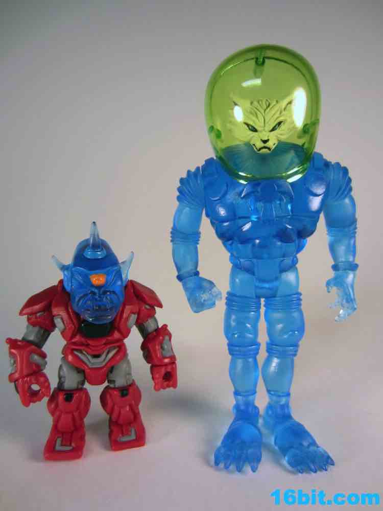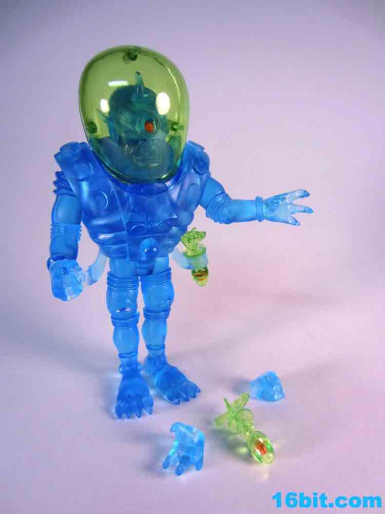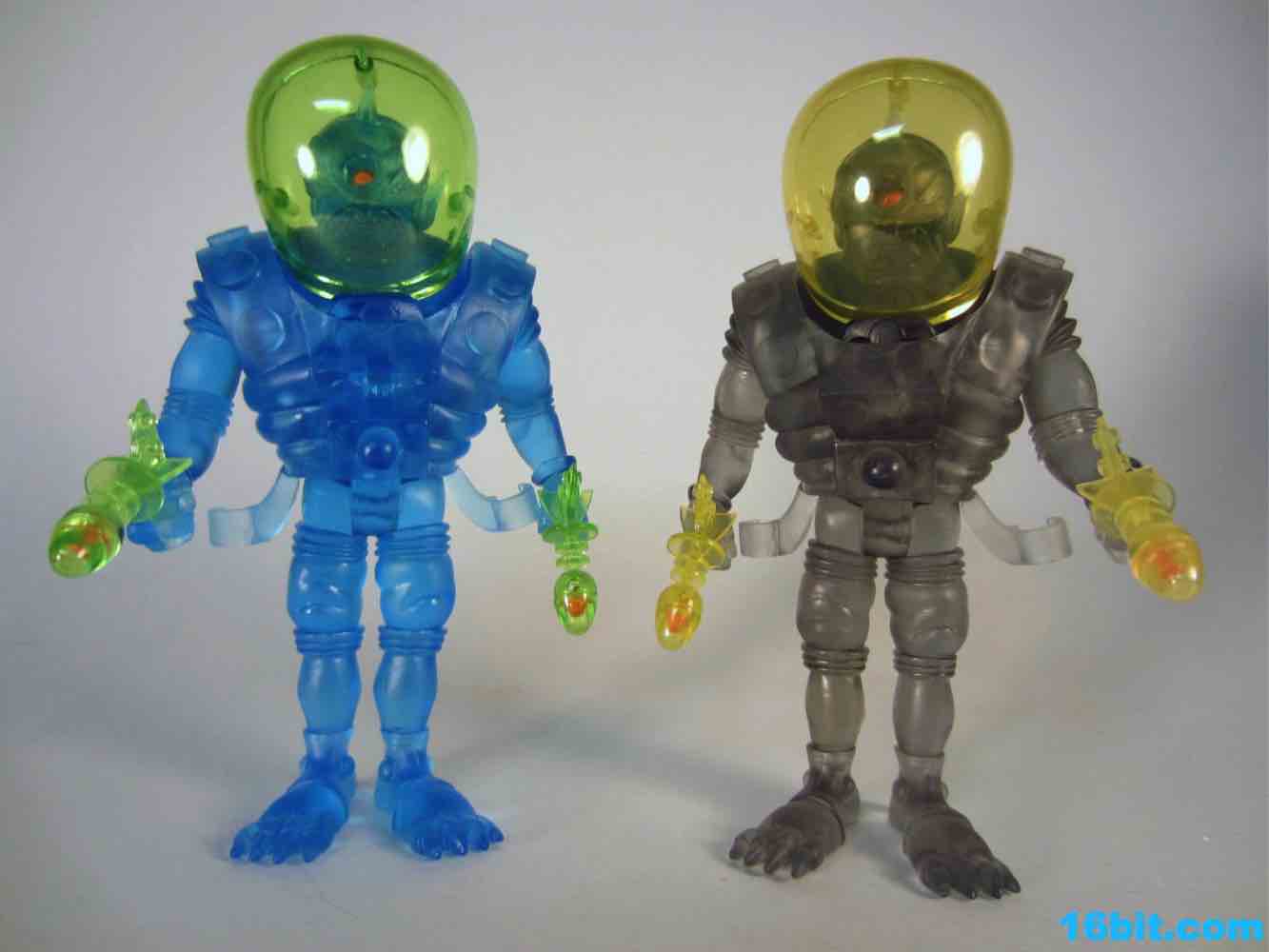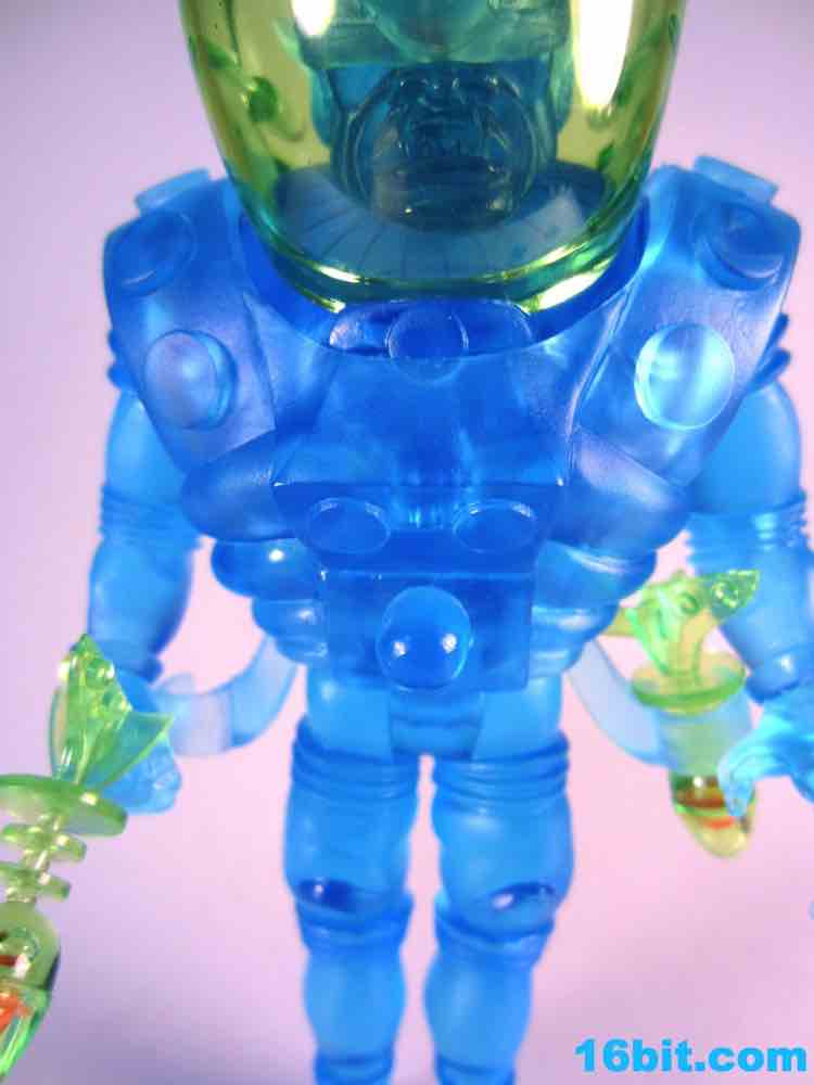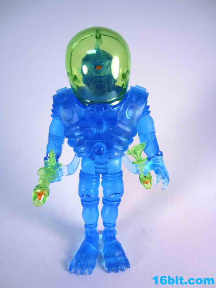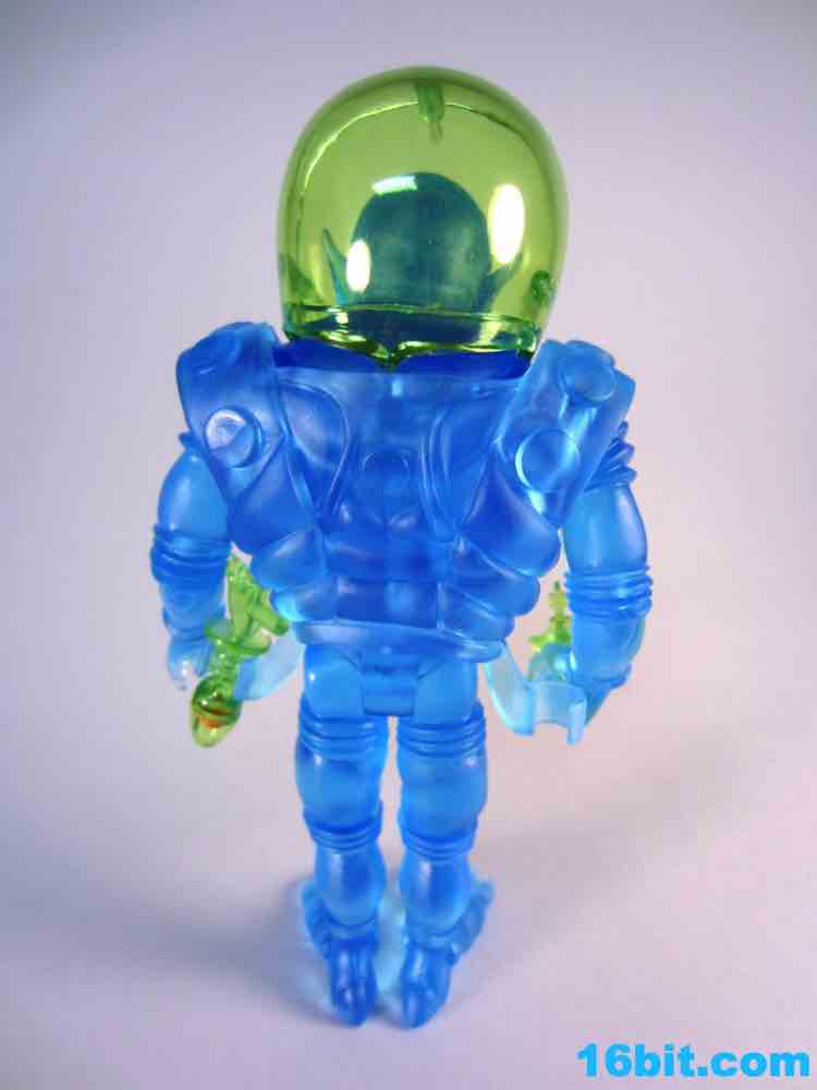The tallest Glyos-compatible figure yet, Cylcops debuted in the summer of 2012 in this swell blue color. It matches similar Inferno, Alpha 7, Electron+, and Astro-Nautilus figures sold since 2010 and is part of a 3-figure, $50 set. That's a bit of an increase, but well, that's life. New tooling costs money and rising costs in China are going to make a lot of people remember the good old days when companies only charged six bucks for a figure. Towering over the other Outer Space Men, Cyclops also has the most gear with removable armor, a giant helmet, and swappable hands. This time around, the character had open hands or closed fists to carry his twin ray guns. It's an impressive specimen, although one that almost feels like it might collapse under its own weight.