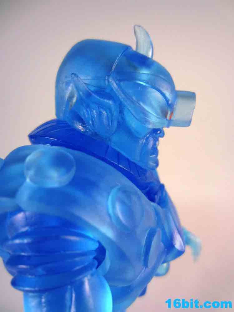 See that little head in the torso? It's like Pheyden. This little detail was present on the original prototype as well, but some eyes were added to bring out its Pheyden-ness. I love it. The bumpy armor looks like a mix of 1980s chic combined with quasi-gladitorial warriors, resulting in a pretty magnificent, if bizarre, giant figure. And you can store his guns in holsters if you like, making him (so far) unique in the line as this is the kind of normal action figure detail that Glyos figures don't normally get for one reason or another. Of course, this figure is a lot more expensive so it makes sense.