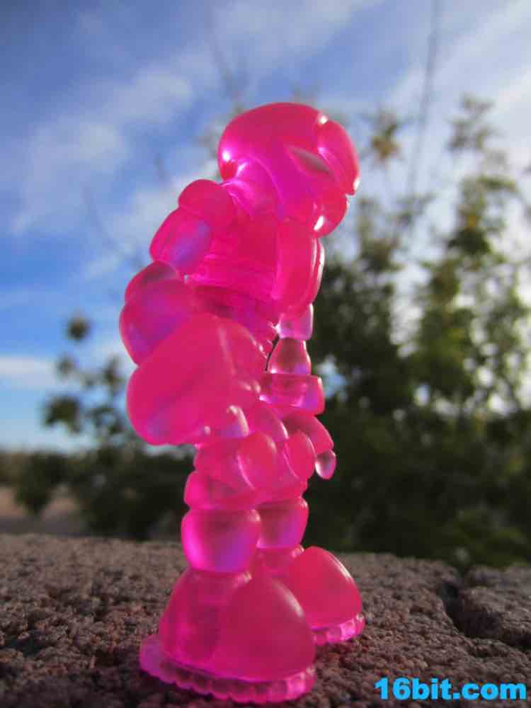 A largely unpainted figure, this white-eyed creature appears in an online comic and doesn't get to do a whole heck of a lot other than stand around and look pretty. It's all about the color of plastic here, and seeing it in person is a different experience from seeing a photo. It's super-bright pink, of course, but just how bright is tough to capture in pixels. If you're a kid of the 1990s who remembers the first time you saw the clear neon green LEGO pieces in M-Tron and Blacktron II, it's sort of like that.