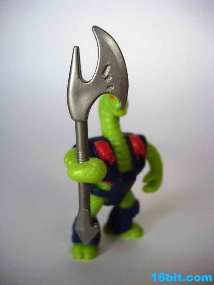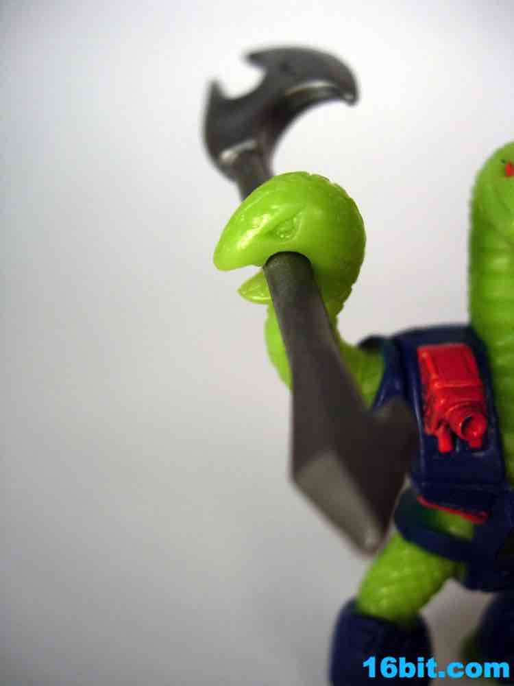 His bladed weapon is nothing special. It's sort of like a pike or one of the weapons used by Jabba the Hutt's thugs although if you squint the large end does resemble a snake. It's cast in silver plastic, slightly flexible and a decent fit for the character.