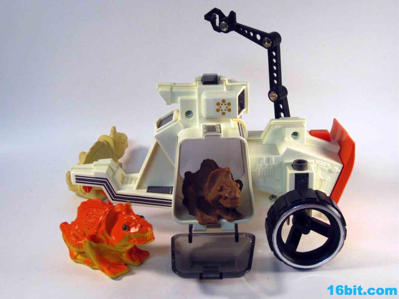 A post-script since I didn't talk about it before: also pictured below is the Alpha Star Trailer. If you bought the whole set in 1983, you got the trailer, a main car vehicles, and some figures which you can read about in FOTD #79. The trailer missed deadline as I was busy. Anyway, it's a nifty vehicle scaled to 3 3/4-inch figures. There's an opening side window, which opens on both sides to store the alien creature. The front of the vehicle has a trailer hitch and a kickstand, so the trailer works as a stand-alone piece.