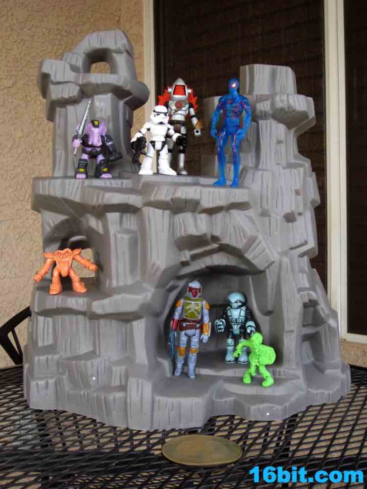 It's a sizable toy, clearly originally meant for 2-3-inch figures. Plastic army men and similarly sized dinosaurs will be right at home, and it's also a generally good size for those little rubber guy figures like MUSCLE, OMFG, SLUG Zombies, Battle Beasts, and even figures as large as Onell Design's Glyos. 3 3/4-inch scale figures look a little big, but they also start to fill up the mountain rather quickly. Were these mountains slightly cheaper, buying a few of them would be ideal. I'd like to see a few other colors as well, but at the current price I don't think I'd buy more than maybe one more of these, if that.