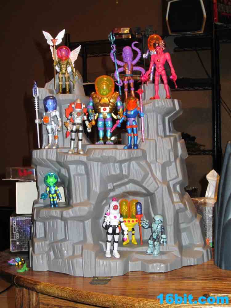 It feels durable but doesn't do much, so it fits in with a lot of older toys if you happen to collect unpainted figures or pre-1983 3 3/4-inch stuff. The flip side of the set is hollow and lacking useful flat surfaces, which could have been a great extra place to play and store toys on little shelves. I could cram about a dozen action figures on here and I think I would have absolutely loved this as a companion piece to the early Kenner Star Wars figures. I have a feeling a lot of people are going to have a retro fascination with this item, but I never paid attention to it until a couple of months ago. It's neat, it's a decent size, and it probably is selling mostly to adults that had a similar toy growing up or collectors curious to see just what the heck this thing is. It looks great with the Outer Space Men and I'd say if you collect anything in the Axis of Onell Design (Glyos, OMFG, Mordles, whatever) this is probably something you should go ahead and snag for them.