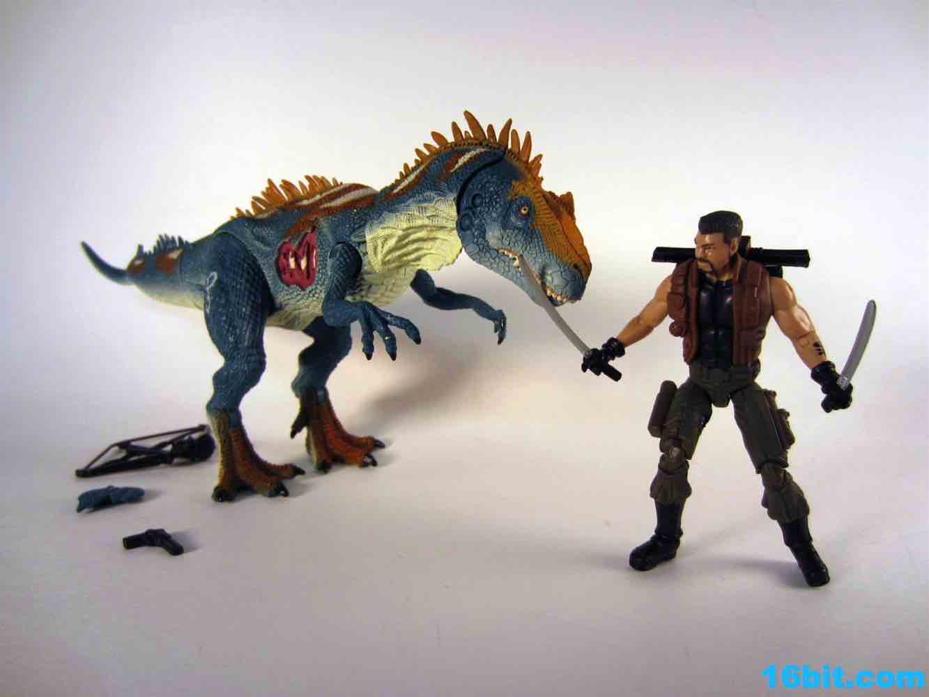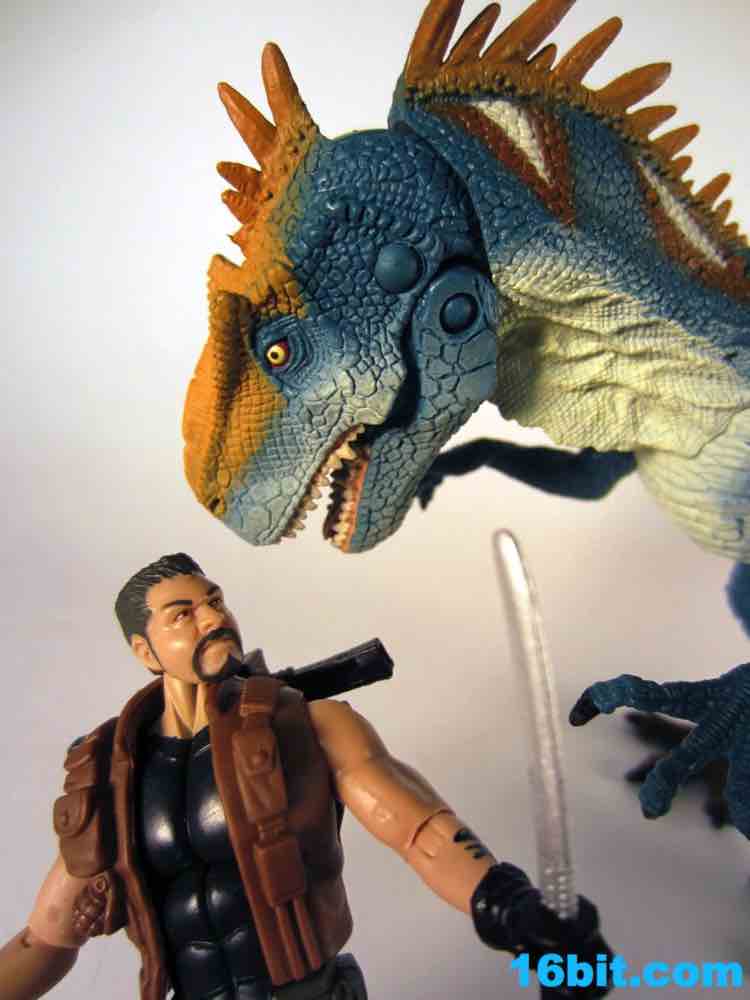Unlike Gunner Gordon, Ash is loaded with gear. He has a pistol which fits in his holster (loosely, so be careful) plus a backpack which can store two painted Ariashikage-marked swords. Rounding out the ensemble is a large bow and arrow which you've seen with other figures like Shadow Tracker from a few years ago. Since the human has no InGen or JP markings, he's likely to be just as much at home in your G.I. Joe collection as on your dinosaur shelf. Also, of the two Dino Showdown sets, this is the better human figure. But how about that dinosaur?
