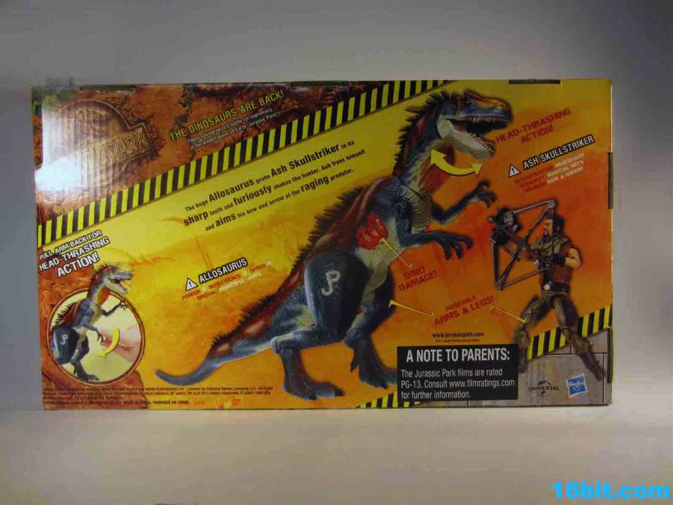 I can get unreasonably excited by "new" launches, so the first two all-new Jurassic Park dinosaurs to be released in over 10 years made for an exciting (and expensive) day at the toy store. I wasn't particularly thrilled to get an Allosaurus (as I have many other theropods) but the scaley sculpt and more modern design was fun to see. It's possible we might end up seeing feathers on our dinosaur toys more frequently very soon, so these transitional toys are shying away from the science for artistic license. It does a good job approximating what these dinosaurs may have looked like in Jurassic Park III had they appeared, and it's also worth mentioning the copyright date on these dinosaurs was of a few years ago - these were long in-development. The packaging also shows a covered-up co-sell on the bottom for "Stegosaurus Strike," one of two remaining as-of-yet unreleased new sculpts from the past few years. Maybe we'll get him for Jurassic Park IV?