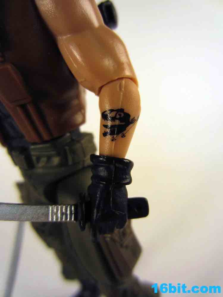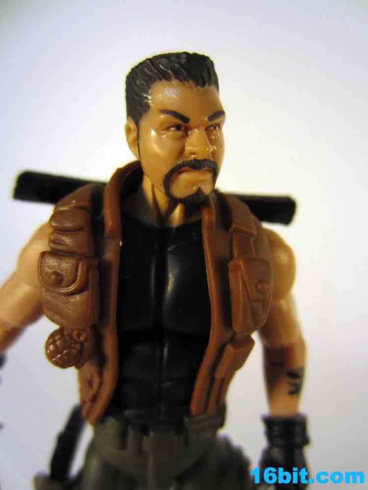 Ash (Mr. Skullstriker is his father) is basically the Rise of Cobra G.I. Joe Monkeywrench figure with different deco and a new head. His grenades are the same color as the vest and the deco is overall more simplified, and illustrations exist that indicate an earlier concept for this figure may have been an "Adventure Team meets Jurassic Park" set. This was not to be, so instead you get an all-new head with a goatee. It fits quite well.