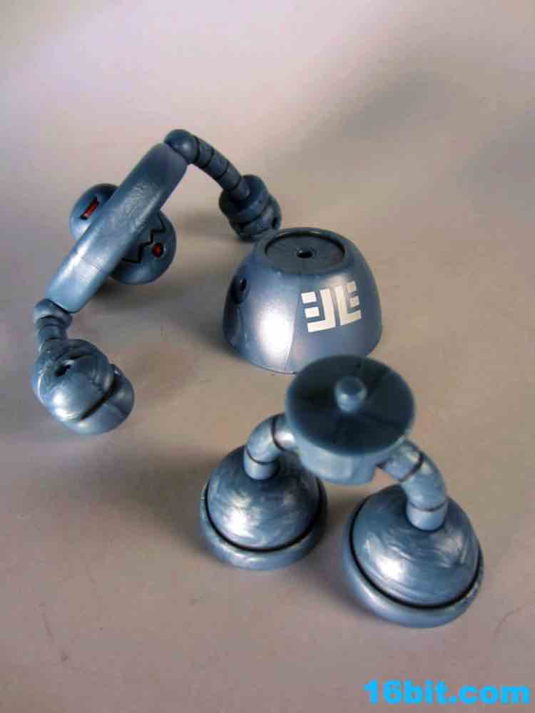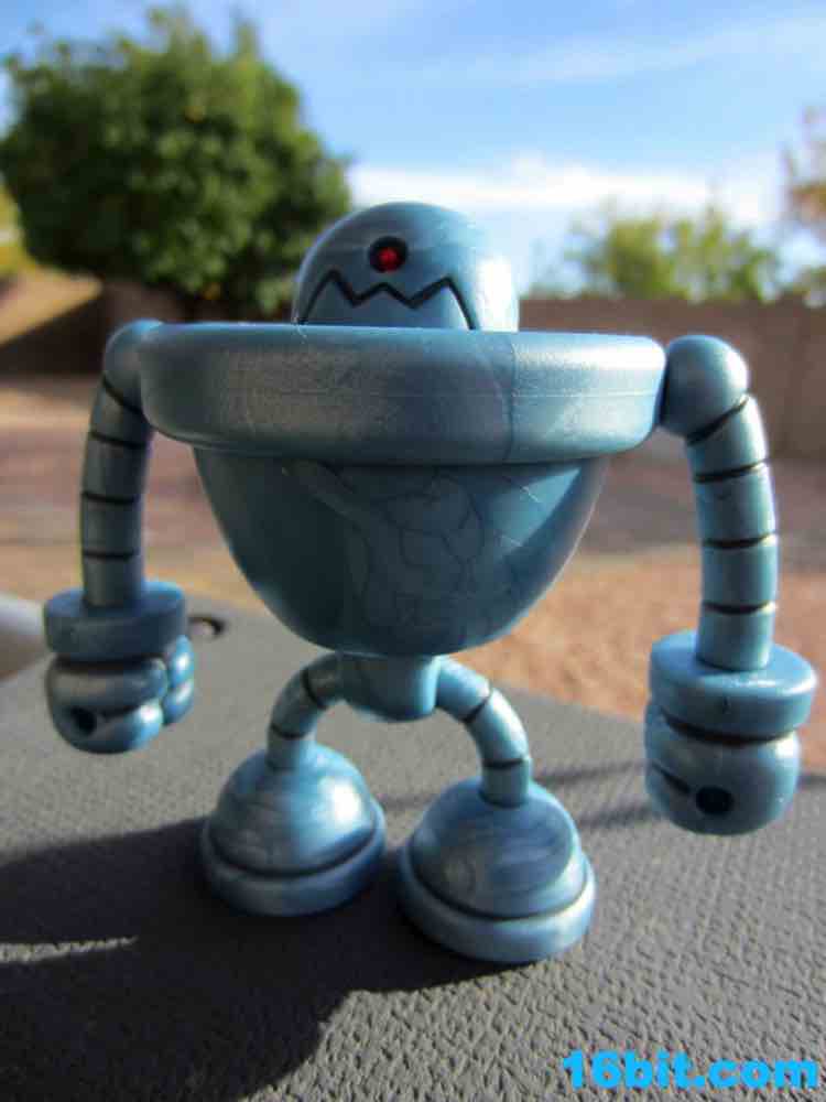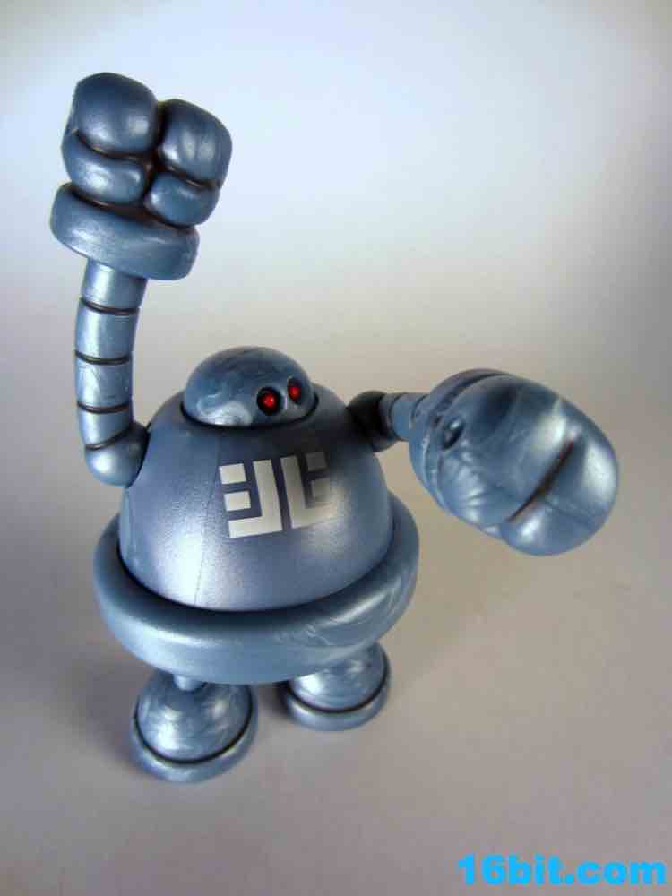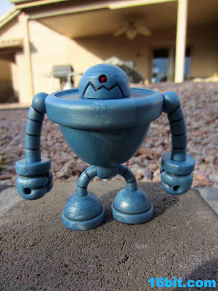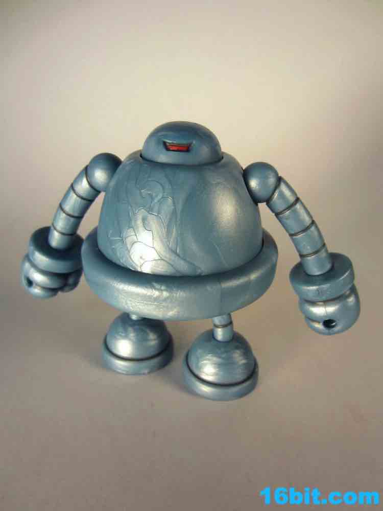 As with previous releases, the figure has about 11 points of articulation and a grand total of 13 pieces. #13 is the second head, stored inside the body when not in use. Each limb is articulated in at least 2 spots, with a large, flat plate piece either making up the shoulders or the waist depending on how you do things. Regardless of configuration, he stands about 3 1/2-inches tall with big, glove-like hands.
