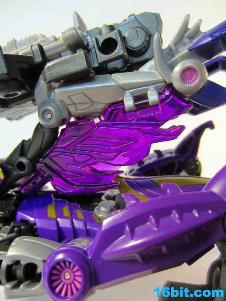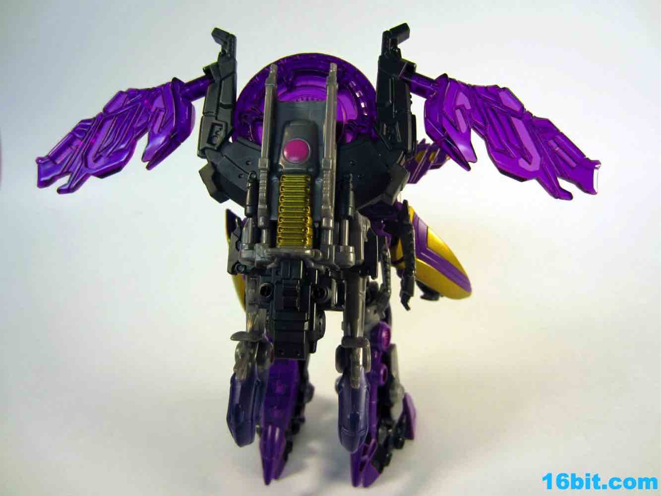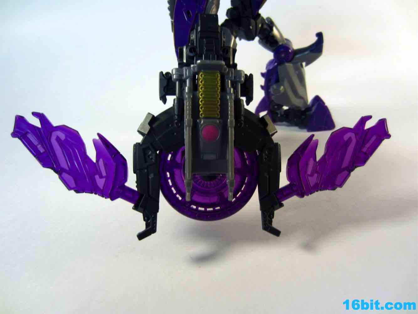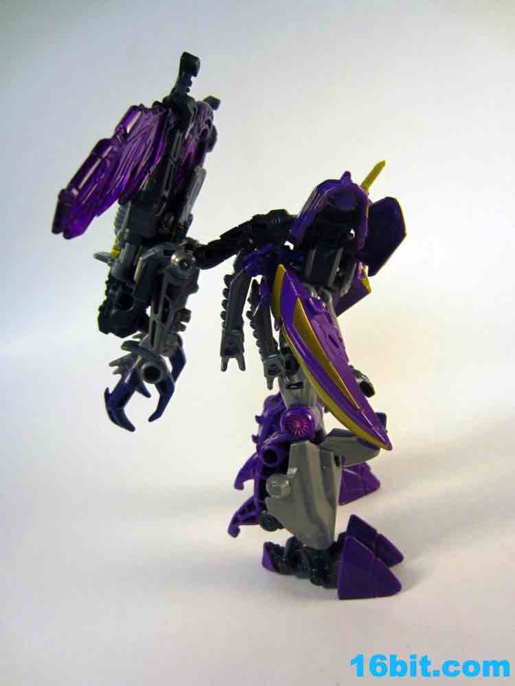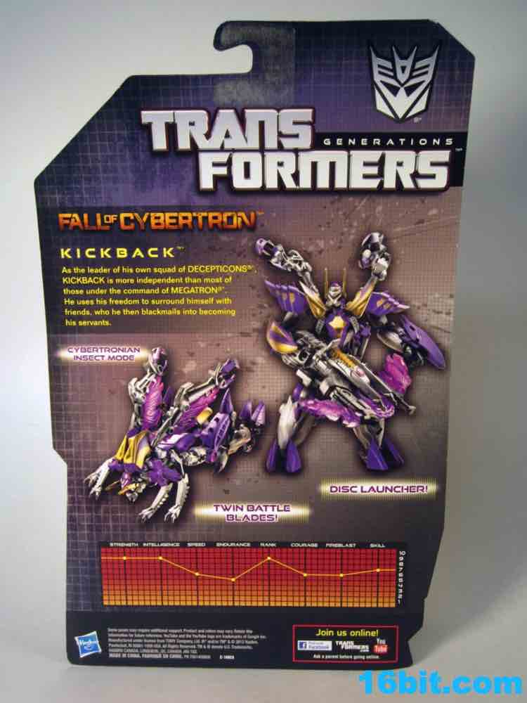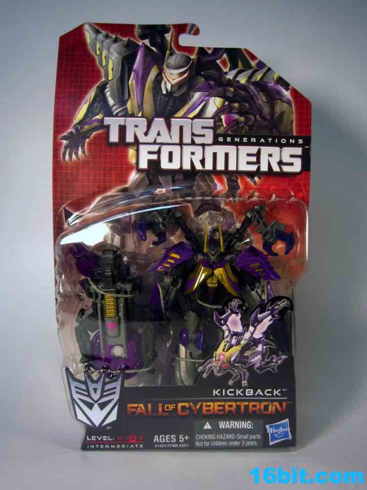 When Kickback was announced for this line, I probably couldn't have been less excited. This isn't because the toy itself is bad - it's actually pretty good, it's just that I have no real nostalgic connection to the Insecticons. In the era of increasingly expensive deluxe toys I grumble more, but so far Generations has been largely good particularly because some of the toys are feeling a little meatier. Kickback feels like a refugee from Transformers Prime with his head resembling a Vehicon, but his accessories feel like they came from a different line entirely. Two small purple "wing" weapons look like leftovers from Transformers Energon, and a disc launcher is a real surprise in a line targeted at least a little bit at older customers. The important thing here is that it looks good and is fun.