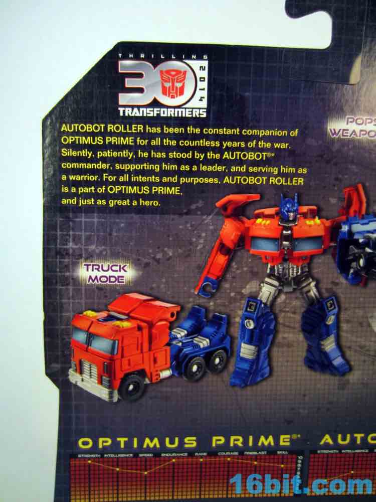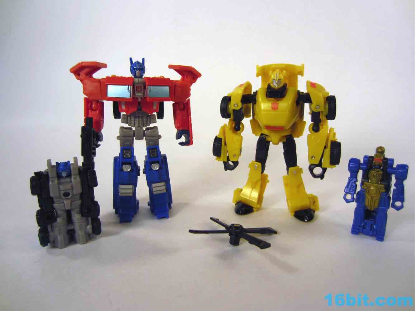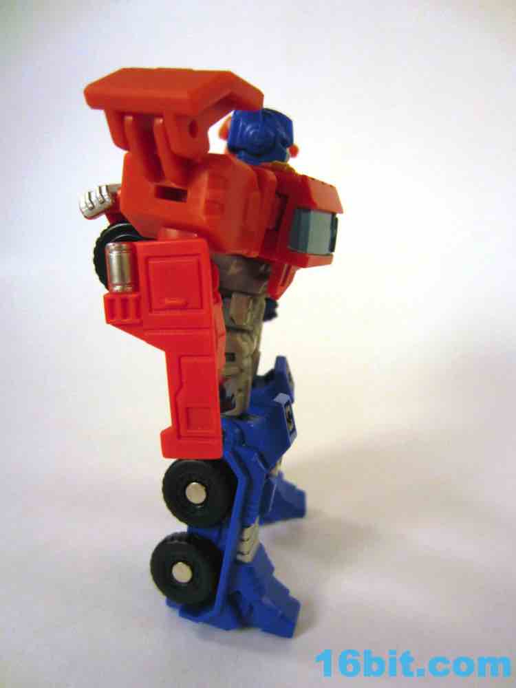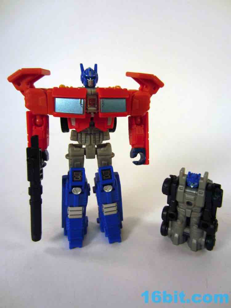 Roller is a fine example of 11 years of Mini-Con evolution, while Optimus embraces both the evolution and shortcomings of the smaller "basic" and "scout" price points. This is a figure that has learned lessons from the very first Rattrap and some of the smaller Vehicons, while retaining problems like how certain kinds of kibble lock in place in robot mode. Despite having too many Optimus Prime toys I couldn't help but want to get this, and I'll wager you're going to feel the same way. Get it cheap if you can!