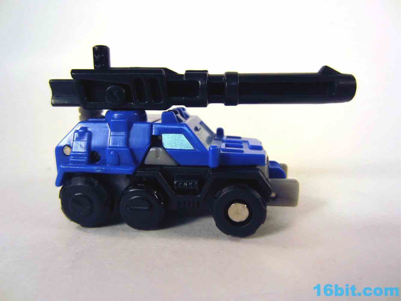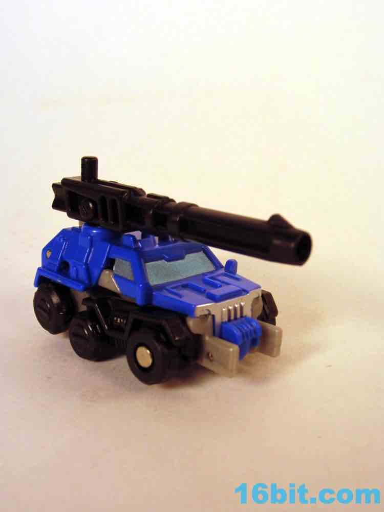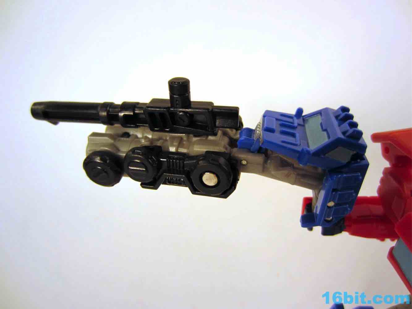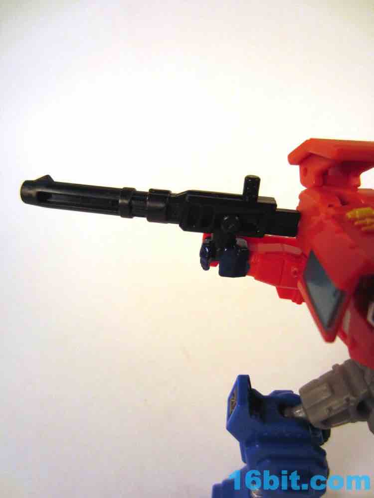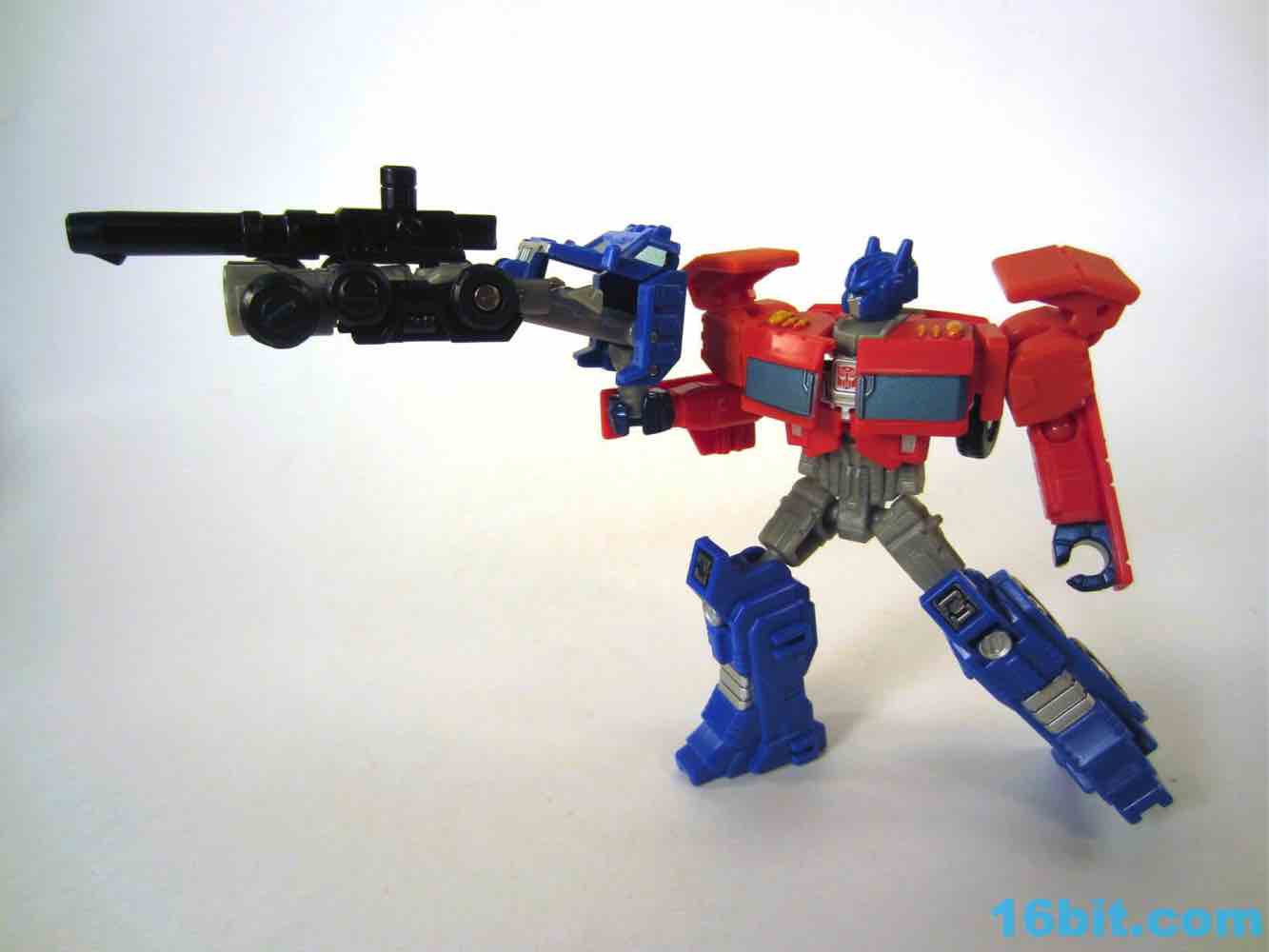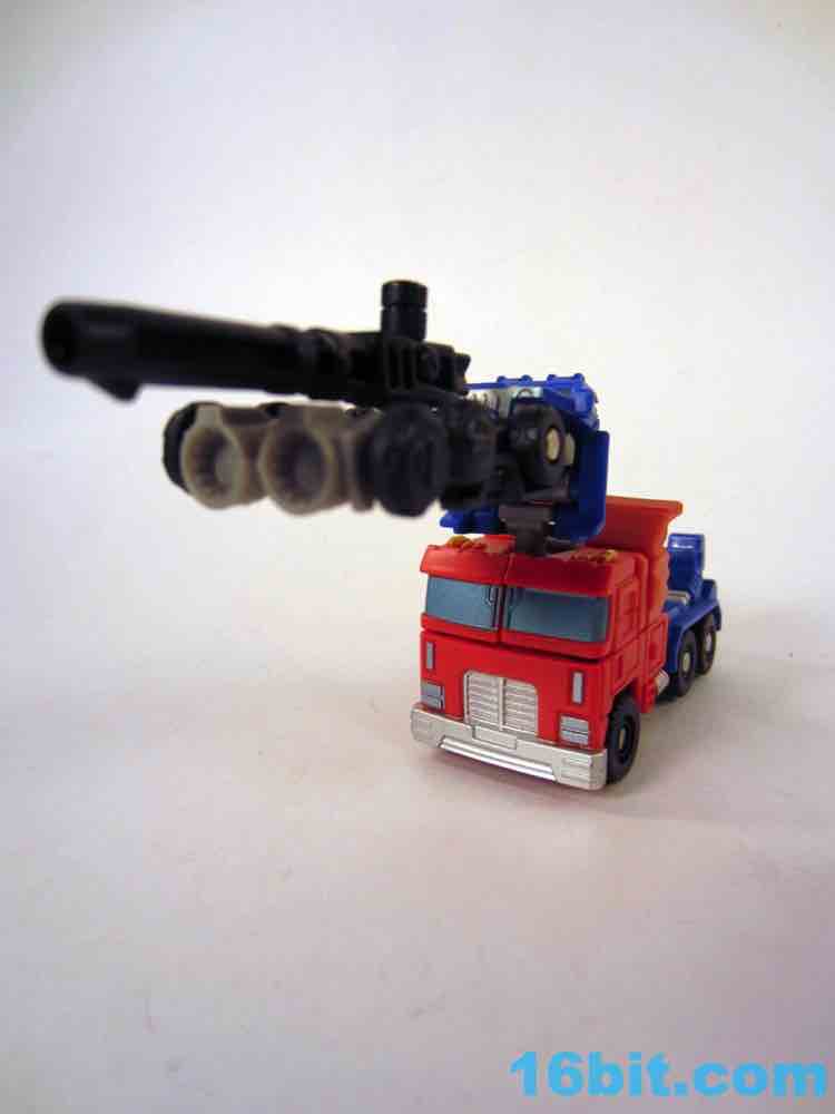 What makes the figure really nifty is Roller, otherwise you'd probably feel you overpaid for the set by about two bucks. Roller looks and feels like a "classic" toy for many reasons, namely the high-quality feel of the plastic and the so-easy-it's-an-accident transformation. In car mode, put the wheels on the ground. For a robot, tilt it back so it "stands" not he rear hatch and pop out the arms. It's just that simple. The face has some paint and the quality of plastic is higher than I would have anticipated. Turning it into the gun is a little more tricky as there are some bits that more or less change automatically as you rotate around the grip, and it's a nice bonus. The "Roller Cannon" can be combined with the included 5mm Optimus Prime ion blaster to form a goofy, much-larger means of menacing Decepticons. I feel that the Roller gun mode is too large for Optimus, but it looks pretty great with deluxe-sized and larger toys.