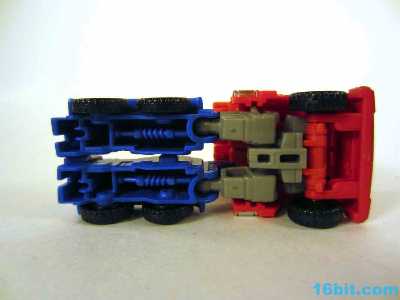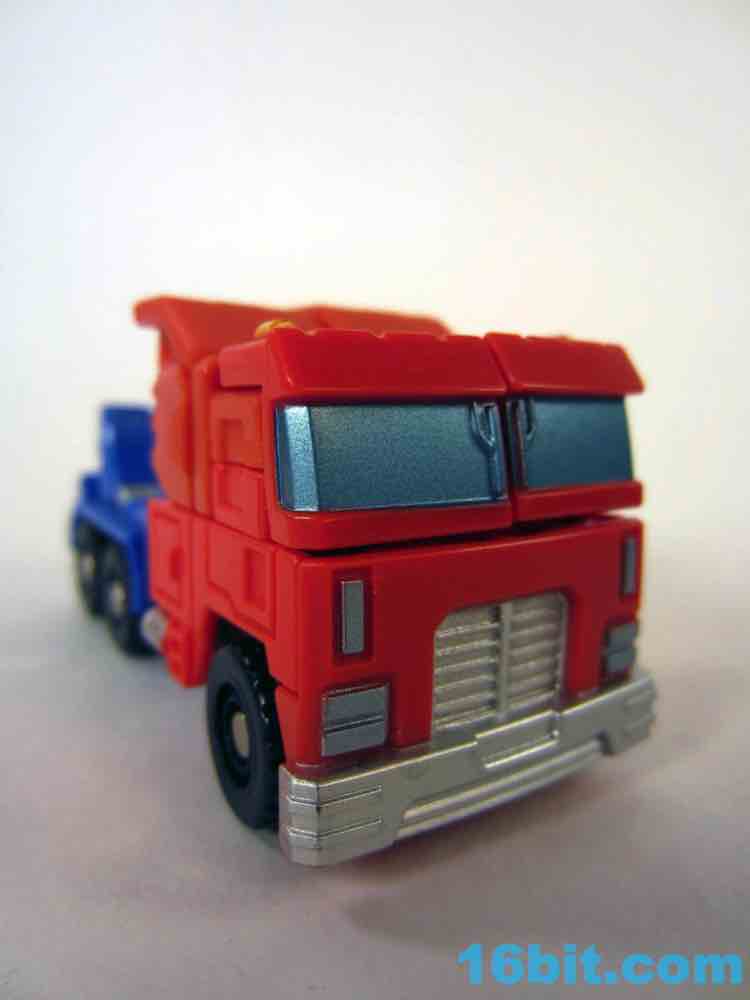 There's not much to the truck, although I do appreciate that the back of Optimus' robot head has a 5mm hole for weapon storage if you're so inclined. All 6 wheels roll freely, and the Autobot symbol disappears allowing him to actually be in disguise for once. The truck mode is pretty great, particularly for such a small toy.