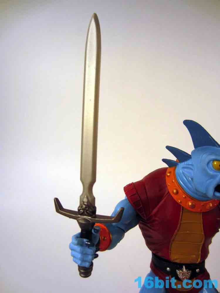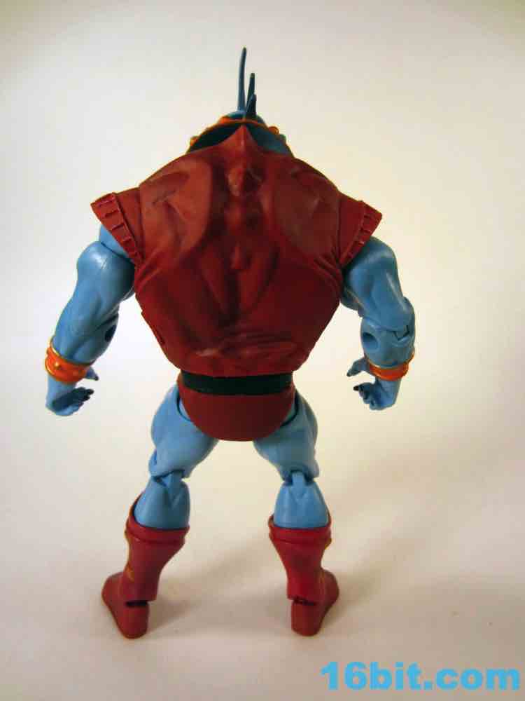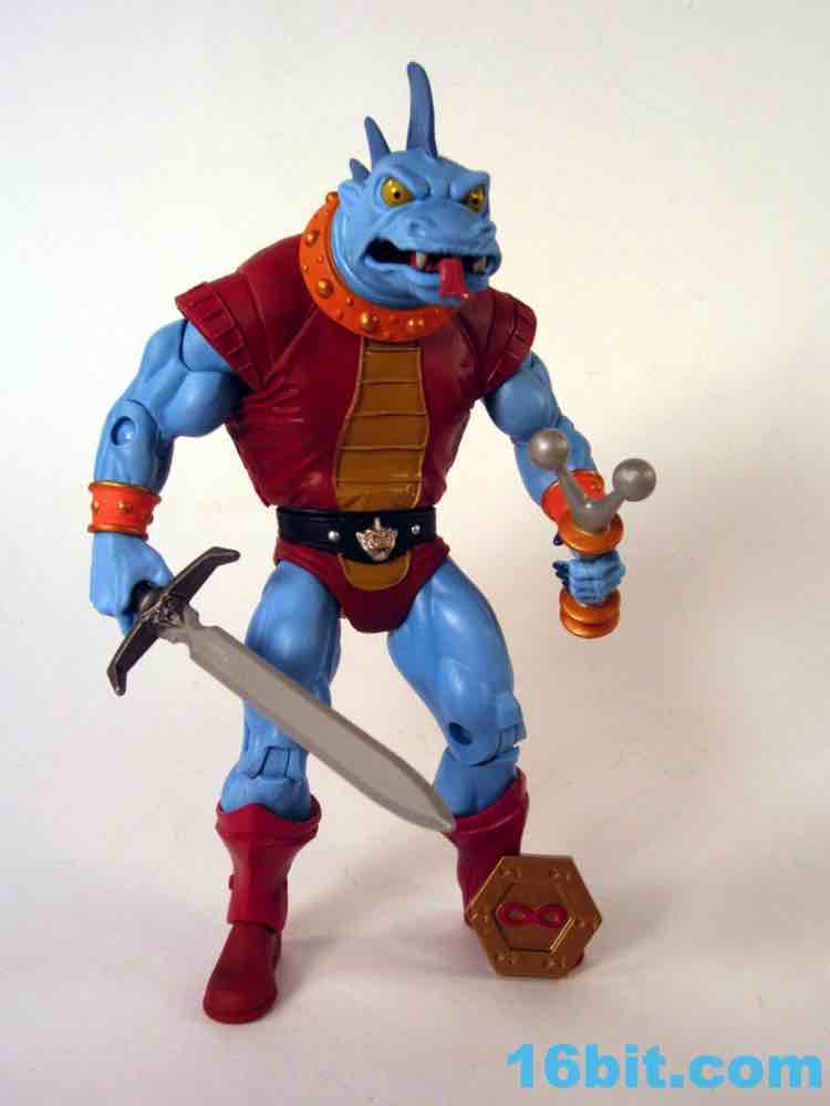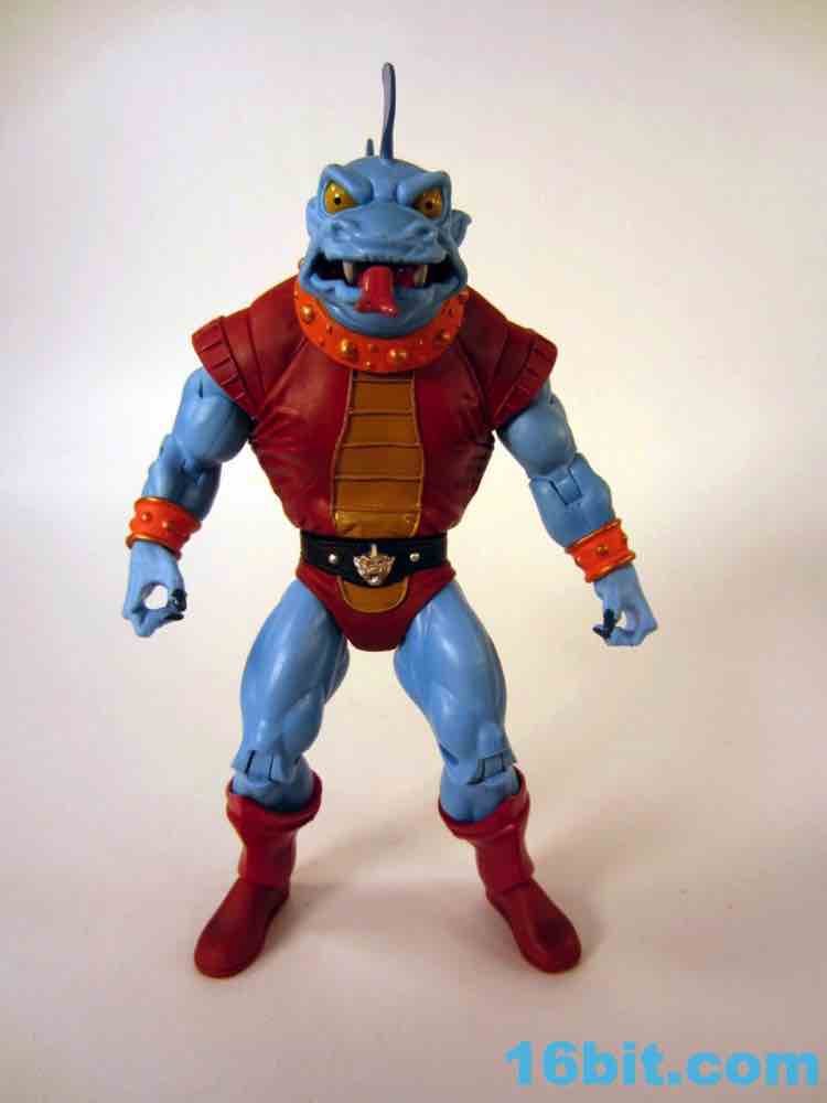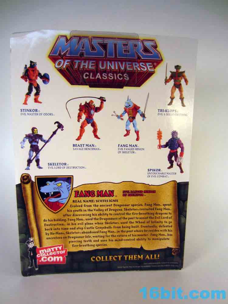 I can't honestly say I was super-pumped when Fang Man was shown, mostly because I didn't have the attachment to him as, say, Two-Bad. My lack of enthusiasm was completely misplaced as this is one great figure - the sculpting is delightfully cartoony while still true to the MOTUC line-up plus he's loaded with accessories and a nice bonus feature, an articulated tongue. You can really move it around, hanging out either side of his mouth or from in between his front teeth. Mattel makes some really expressive figures, but this dragon-based blue baddie actually has some options. You can open his mouth just a smidgen to move his forked tongue around, and that's a great feature to have.