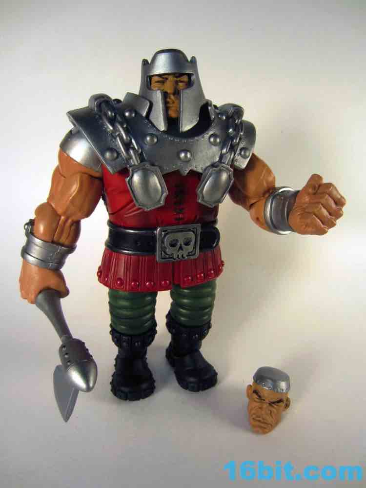 The figure has two heads, giving you more options than you would have asked for in the first place. The default head is helmeted, while the alternate one is just a cap over his skull giving you a look at the exquisitely ugly mug on Krass. (That's his real name now, by the way.) The blonde warrior is squinting, with a wrinkly face complete with large, presumably chapped lips. It's no wonder he normally keeps all of this under a helmet. The detail that the Four Horsemen sculpted into his noggin is incredible, streets ahead of what we saw in the 1983 and 2003 releases of the character.