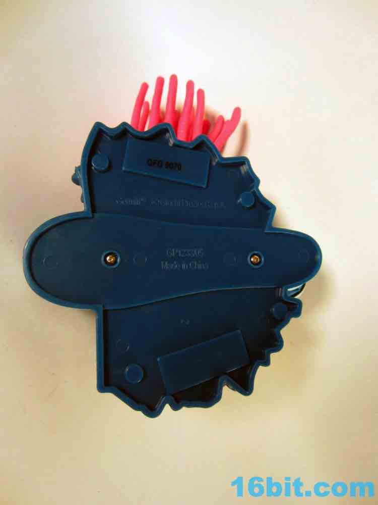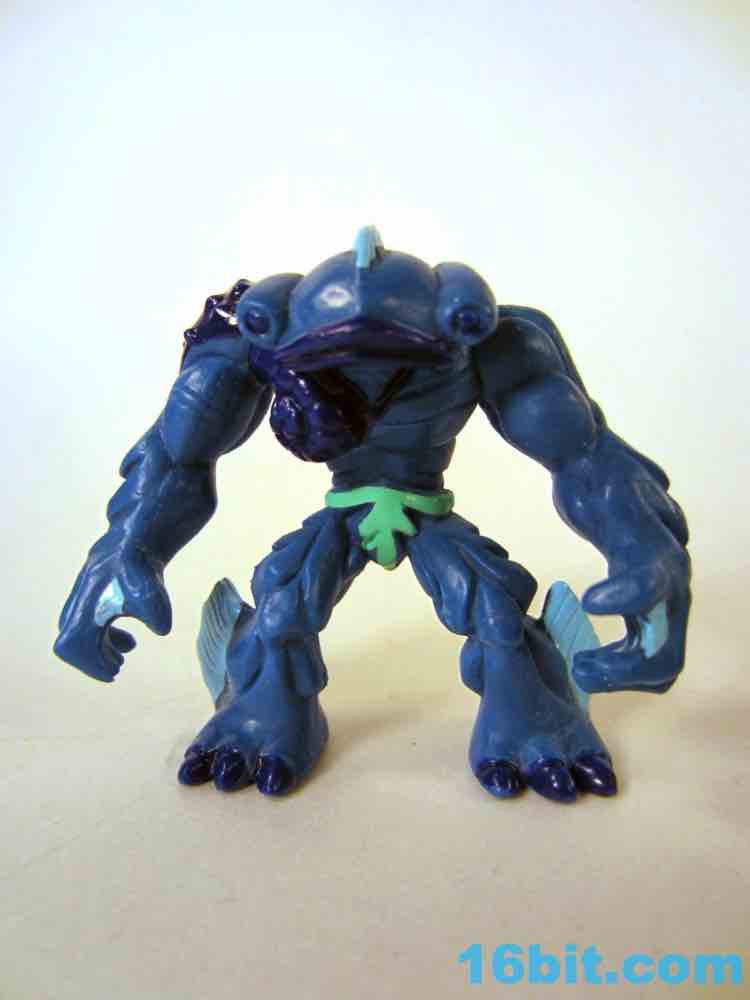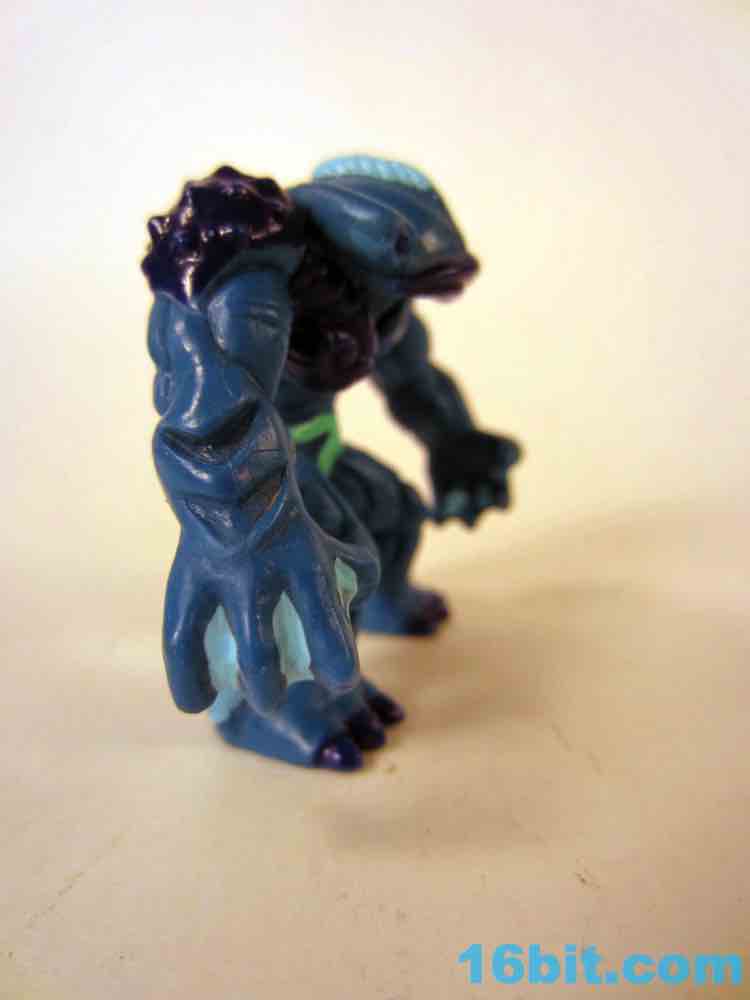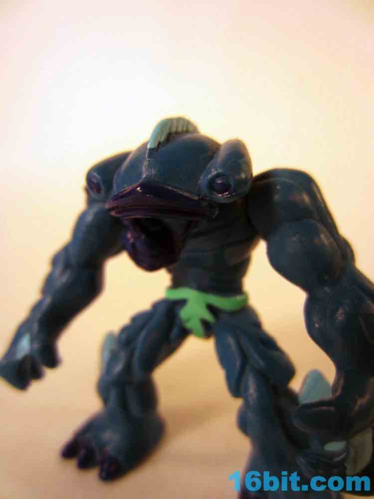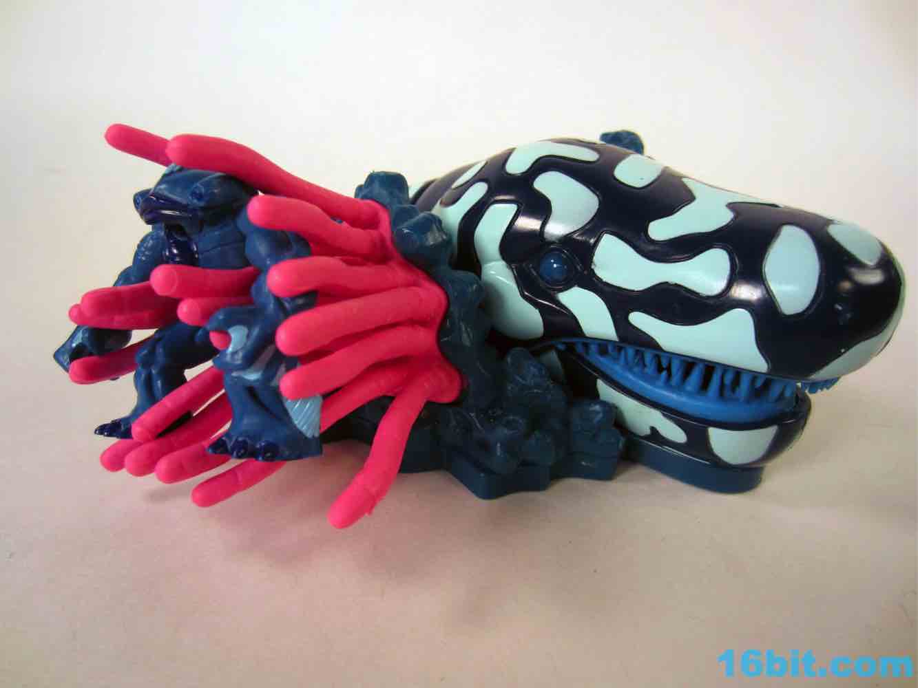 There's very little paint here, very pale blue on the skin and a little blue on the eye are the only deco on this toy, making it feel a little more like an older 1980s or 1990s plaything. (This is a plus.) The interior of the mouth has a huge, knobby tongue which acts as a switch to close the mouth. Just open the mouth until it clicks, and then push down on the tongue to "eat" smaller Gormiti or other figures. I think it might work well with the upcoming Mordles for the Rocks and Bugs and Things relaunch as well, as smaller figures like Fighter Pods fit right into its toothy mouth. I really wish a button off to the side controlled the jaw, but it's not like I can change anything now.
