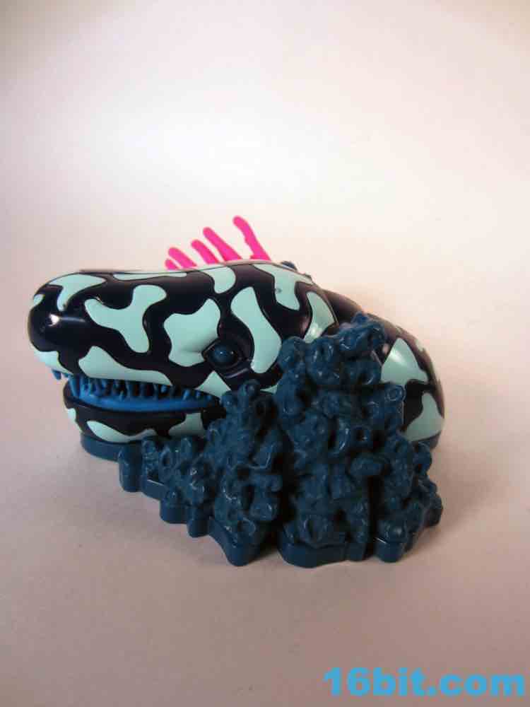 The Murena Den comes with a Hammer the Predator figure, which is a pastiche of sea life that vaguely resembles a hammerhead shark. There's a shell on its chest, webbed Creature from the Black Lagoon fingers, a light blue Speedo, and a shoulder on his shell. There's no articulation, and two colors of paint help to decorate the figure.