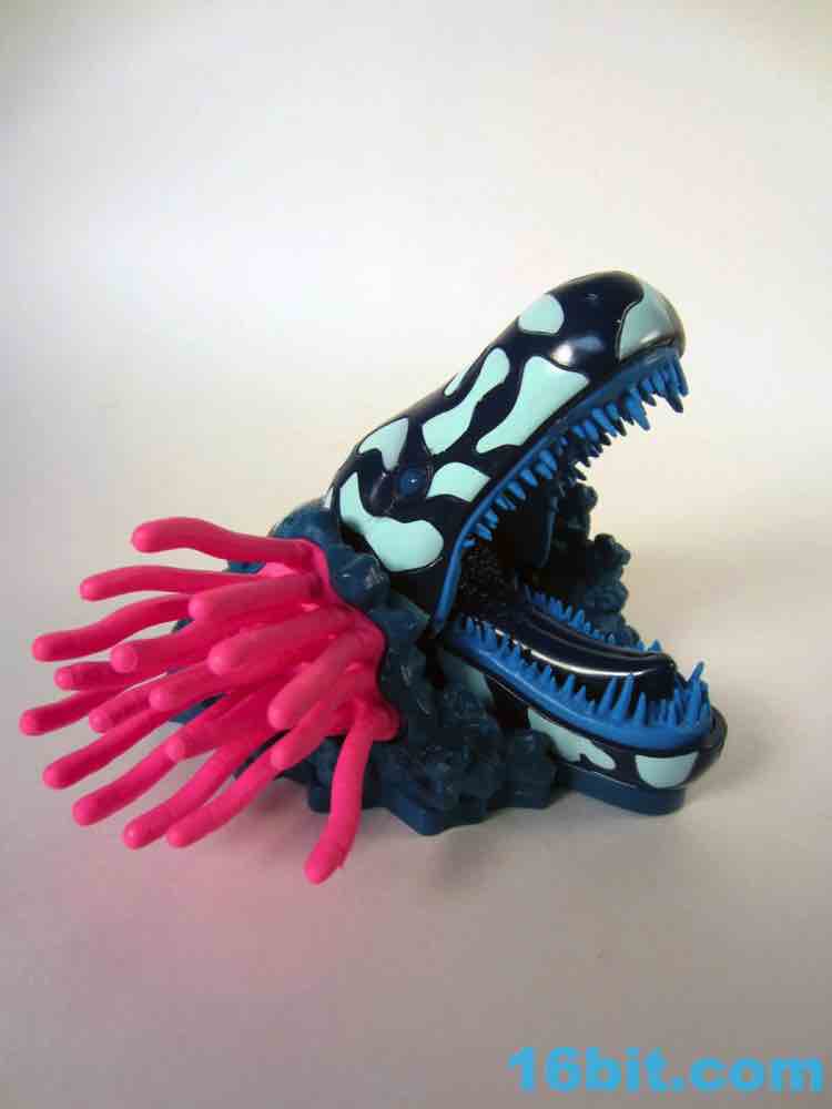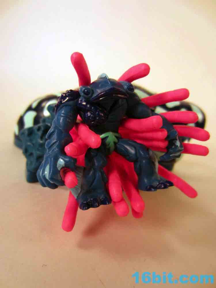 At about 5-inches long by 2 1/2-inches tall, it's not very big. A pink growth on the side gives it the illusion of being larger, these coral-like tentacles are rubbery and can grip a small figure, holding on fairly tightly. It's actually pretty surprising, I figured it'd just drop the figure but it seems to hold tightly enough to not be worthless. I'd suggest mostly getting this for its own merits, as it's kind of goofy and fun, but the normal Gormiti figures seem a little big for it.