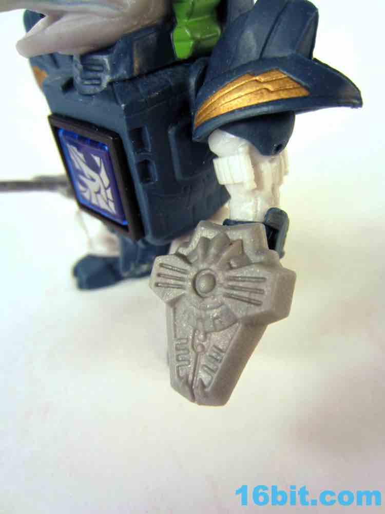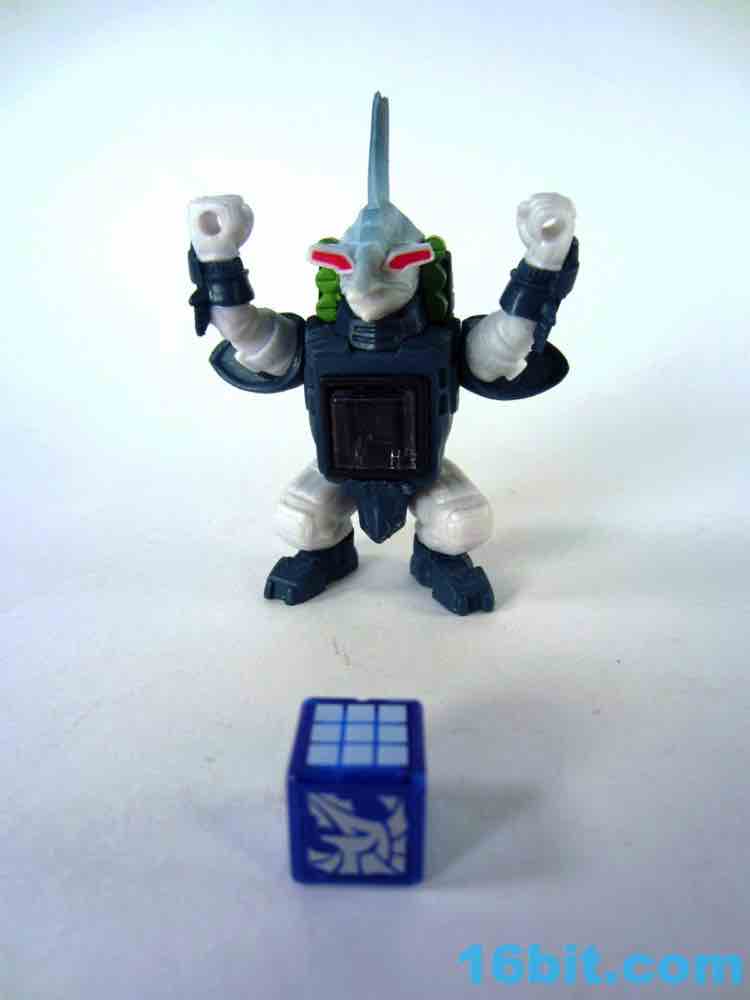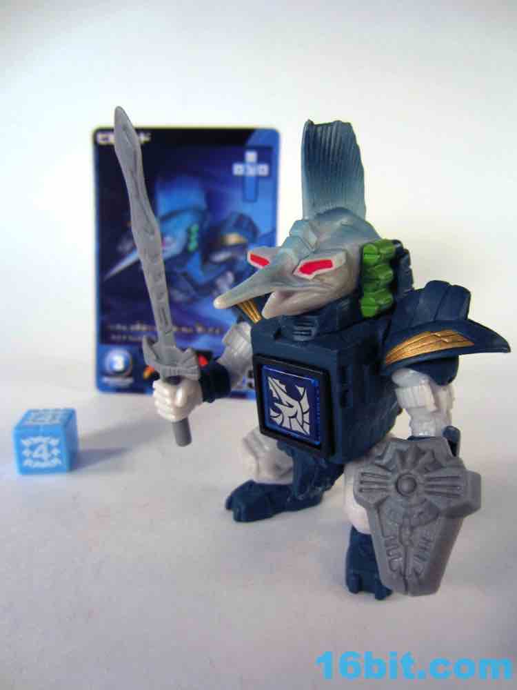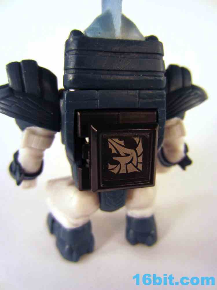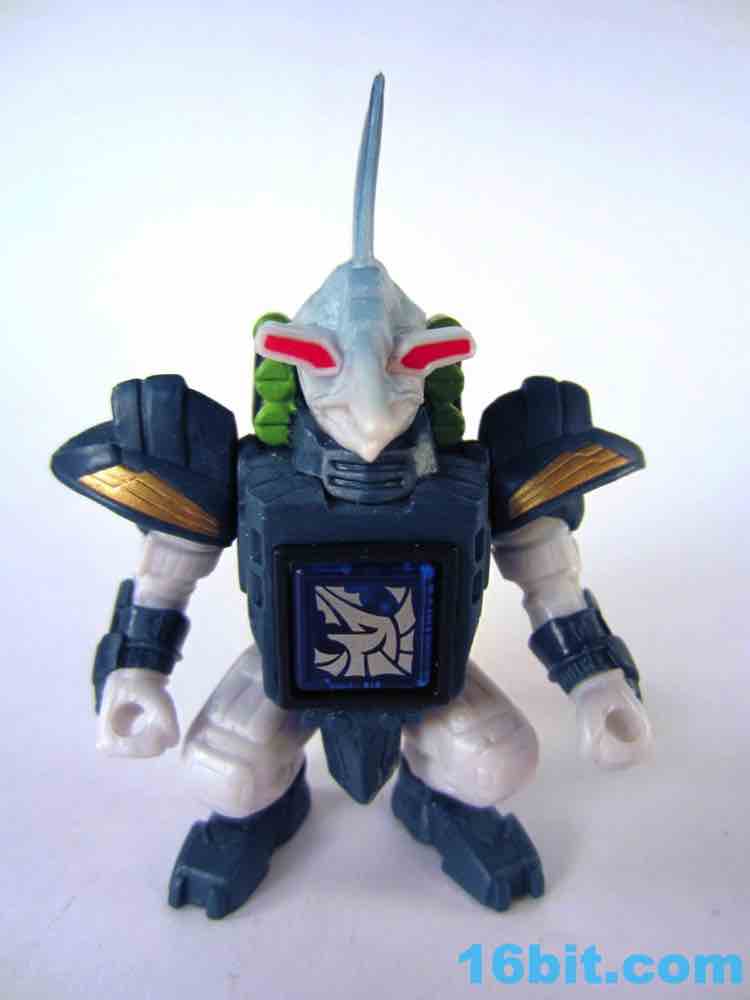 Swordbill's sculpt exceeds the budget for this toy, as there are numerous scultped straps on his arms and armor on his legs which sadly go unpainted. This one looks great, but more paint would make it look even better. He has no problems moving his arms or legs, and the painted green lights (or rockets) on the sides of his head should deafen him pretty quickly in the heat of battle. A splash of green on each shoulder helps to bring the figure to life, and also give him a different feel from his translucent, blind-boxed cousin.