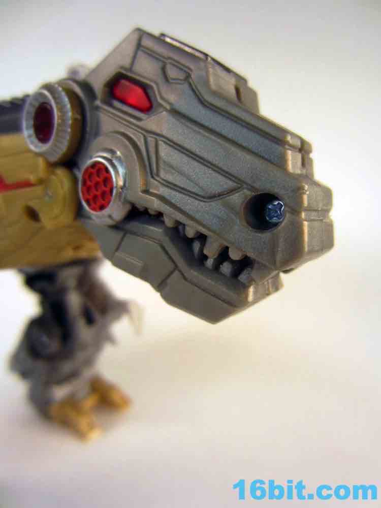 The dinosaur mode does feel fairly large, but it's just not as satisfying as most of the other releases. The big red rosy cheeks are distracting, and his snout feels blunt. Textures on his head feel very forced, with the detailing allowing Hasbro to show you just how much detail they can put in there. A smooth head might look better, and as someone who really does like the original head (as well as some of the remakes) this one just didn't click for me. Since it'll be hanging off his back in robot mode in my house, I doubt I'll give it a second thought.