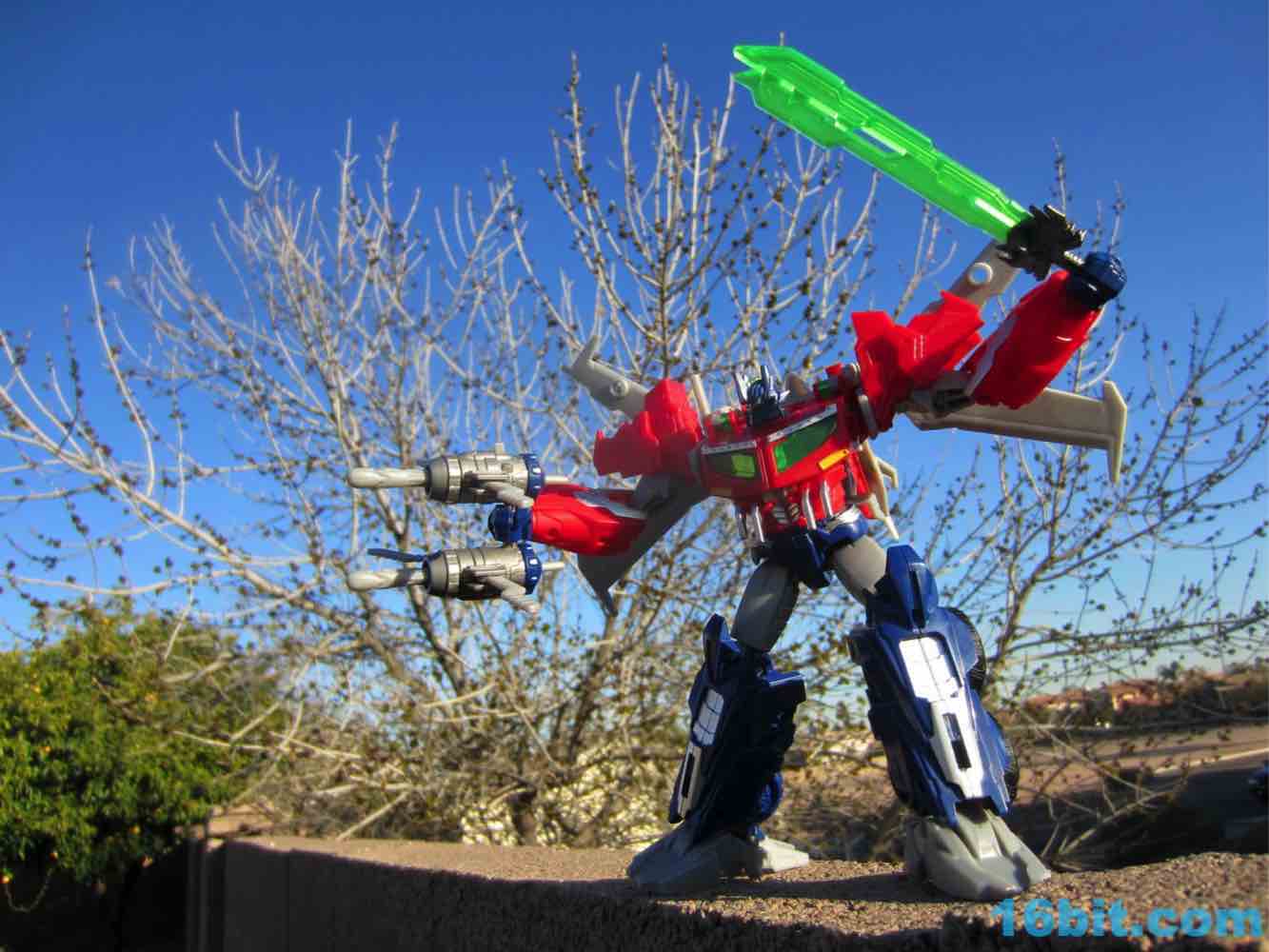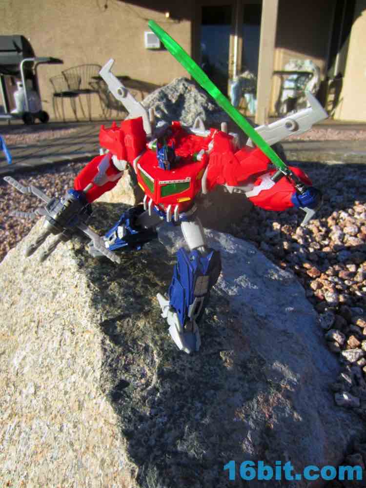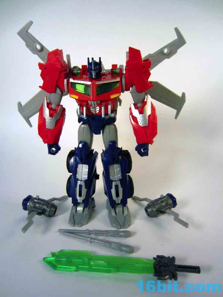 With so many Optimus Prime toys from which to choose, it seems unlikely that any child will exit their single-digit years with only one. Collectors have dozens (if not hundreds) of toys bearing the name now, so when you have one like this with so much going on it's tough to look at a toy and say "Oh, sure it's the same guy but I need another one." This one, I knew the second I saw it I had to have one. Sword? Jetpack? Rocket launchers? It's a real toy, more or less, and it's a pretty great robot figure too. Other than the shoulder tabs, I don't have anything to complain about here. This is a good toy, with a lot of stuff, at a decent price.