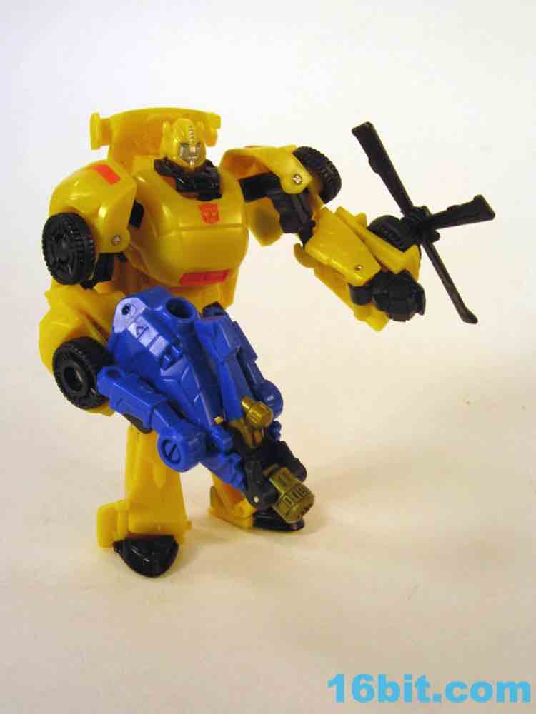 The robot is O.K. The face isn't much to look at, and the deco is basically the blue/gold inverse of a Micromasters toy from 1990. His head sculpt is nothing like his namesake, but it does feel a lot like an older toy with awesome 3mm-compatible hands so you can use your Cyberverse weapons. If you could buy more figures like this, do so. He makes a great gun, robot, and helicopter and for $4 or so per you'd love the snot out of it.