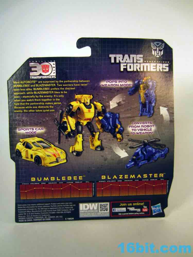 This is a pretty good one. The original Transformers line featured these characters in different forms, so the pairing of Bumblebee with Blazemaster is a nifty update that pulls from a few ideas and is, if you ask me, more or less an original take on the G1 character.