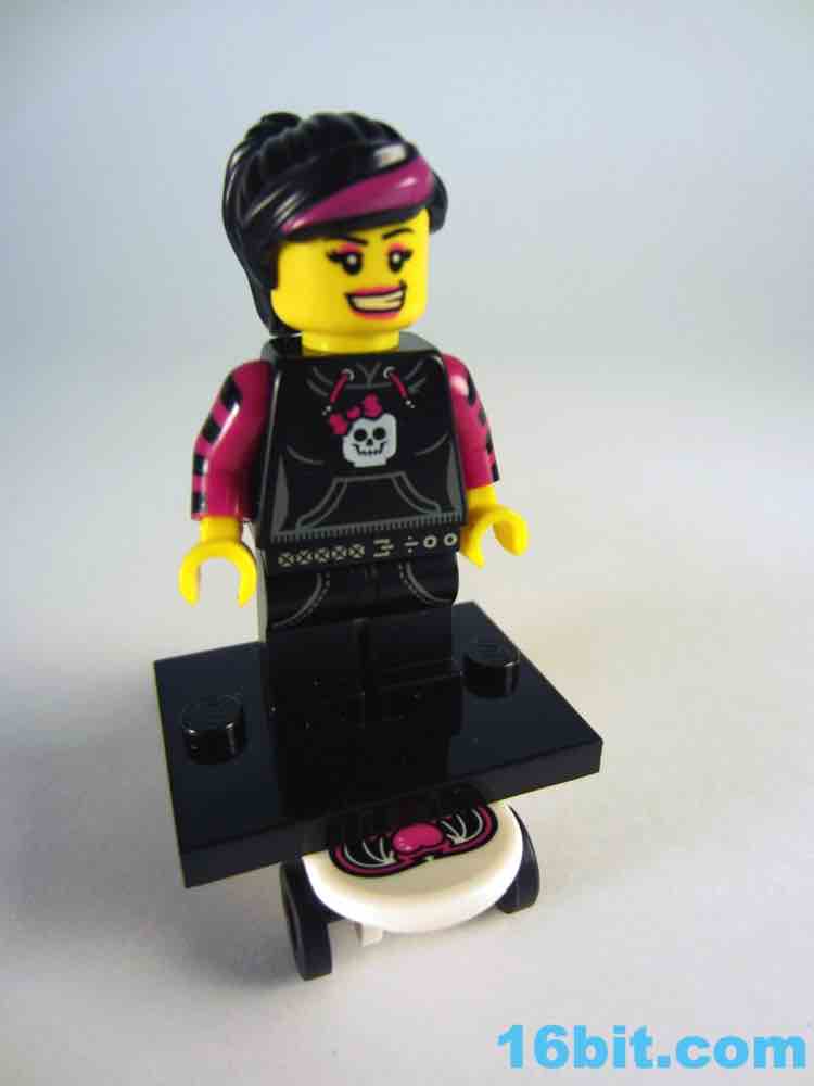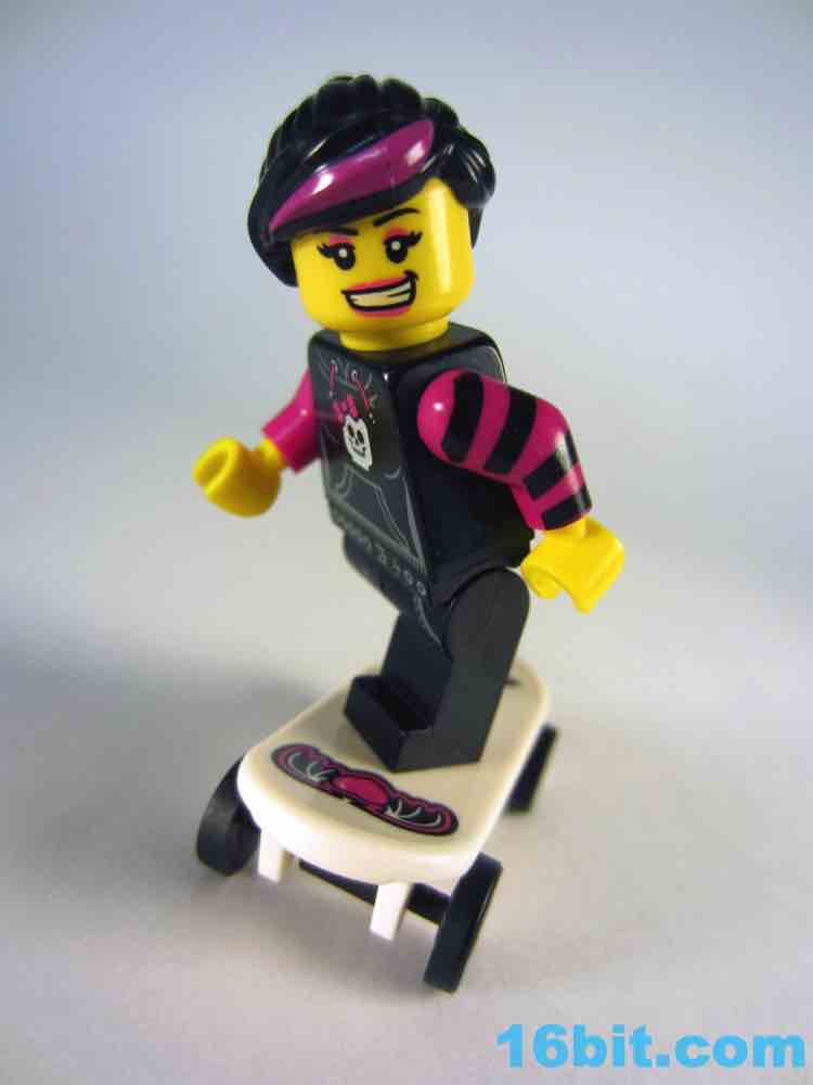 While young boys may not be as interested in this figure, I'll go out on a limb and assume girls and older boys will like this one. Perhaps boys may be reminded of that one girl in art class who was super cute and kinda dressed like that in high school but dated some other dude who went to another school which you knew was just code for her not being into you but you didn't take that personally at the time, did you? THANKS FOR NOTHING LEGO. ...where was I? Right, this is a good figure with a nice board with moving wheels, so go ahead and get her for your LEGO burg. Just keep her away from the LEGO high school because she might depress the LEGO Star Wars collectors and pioneering LEGO internet toy journalists.