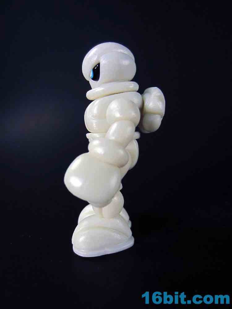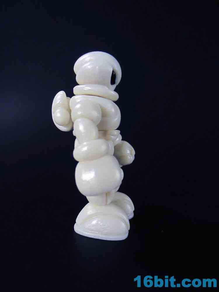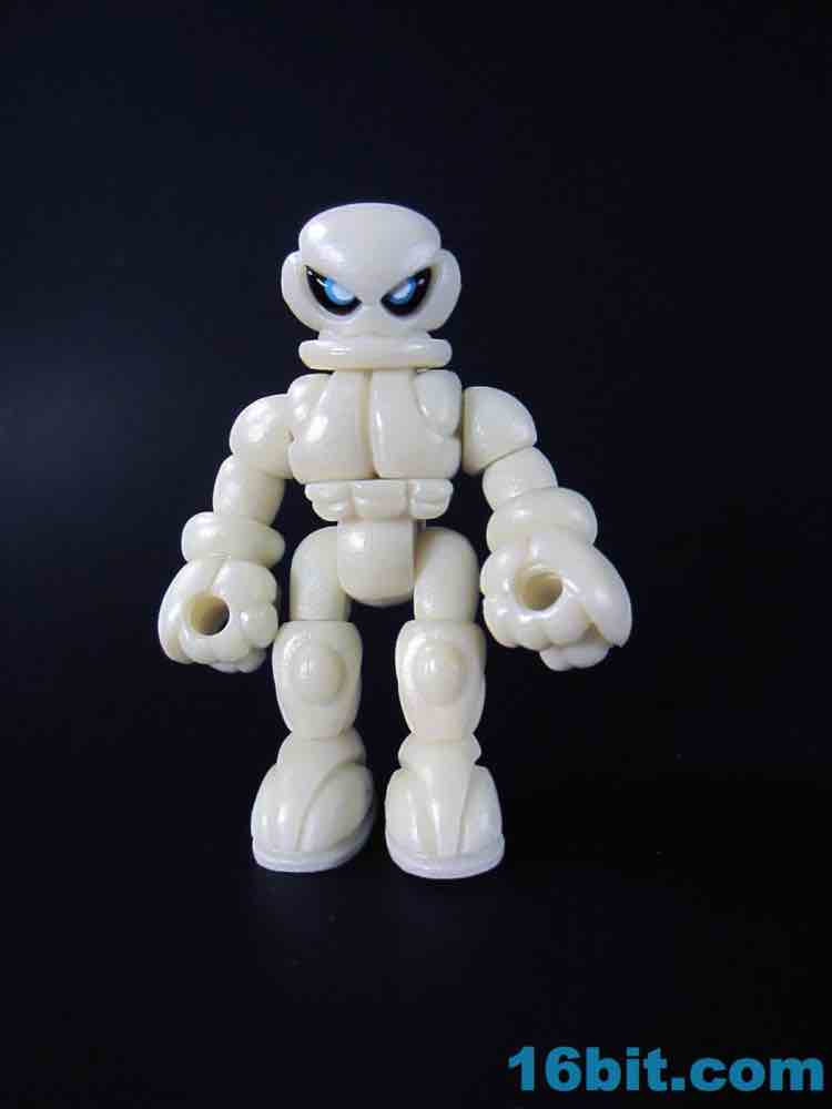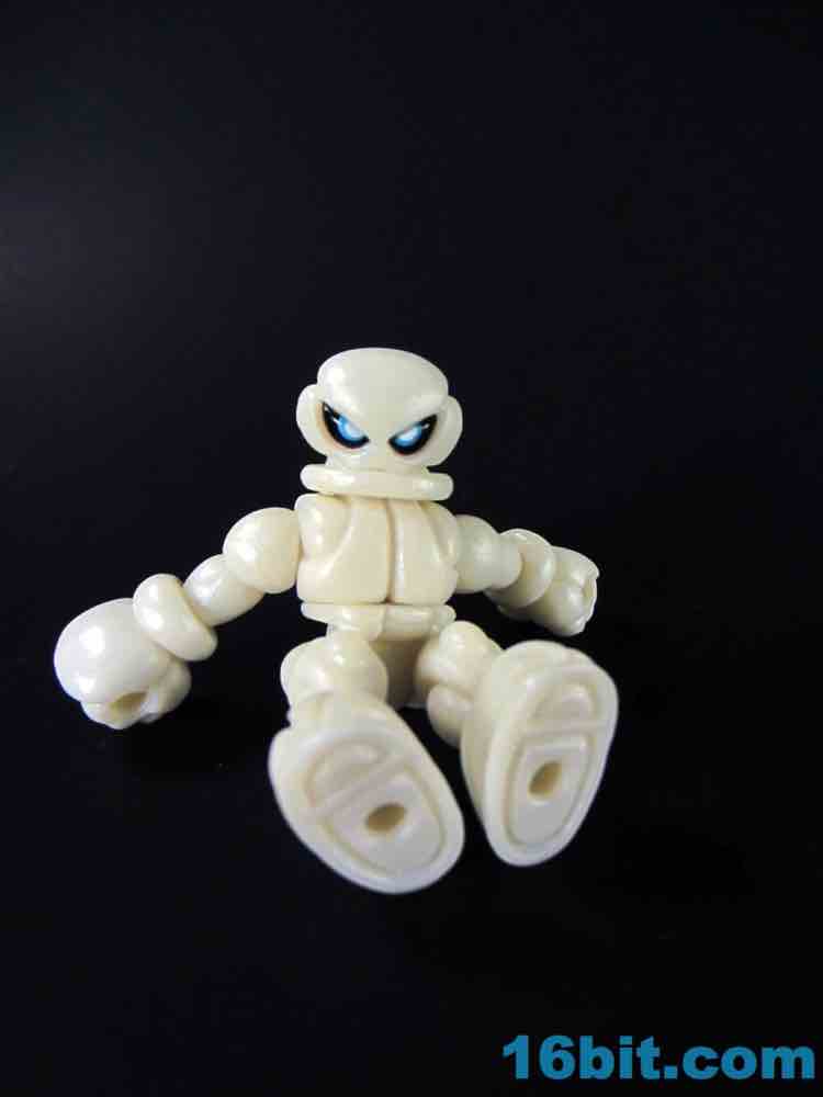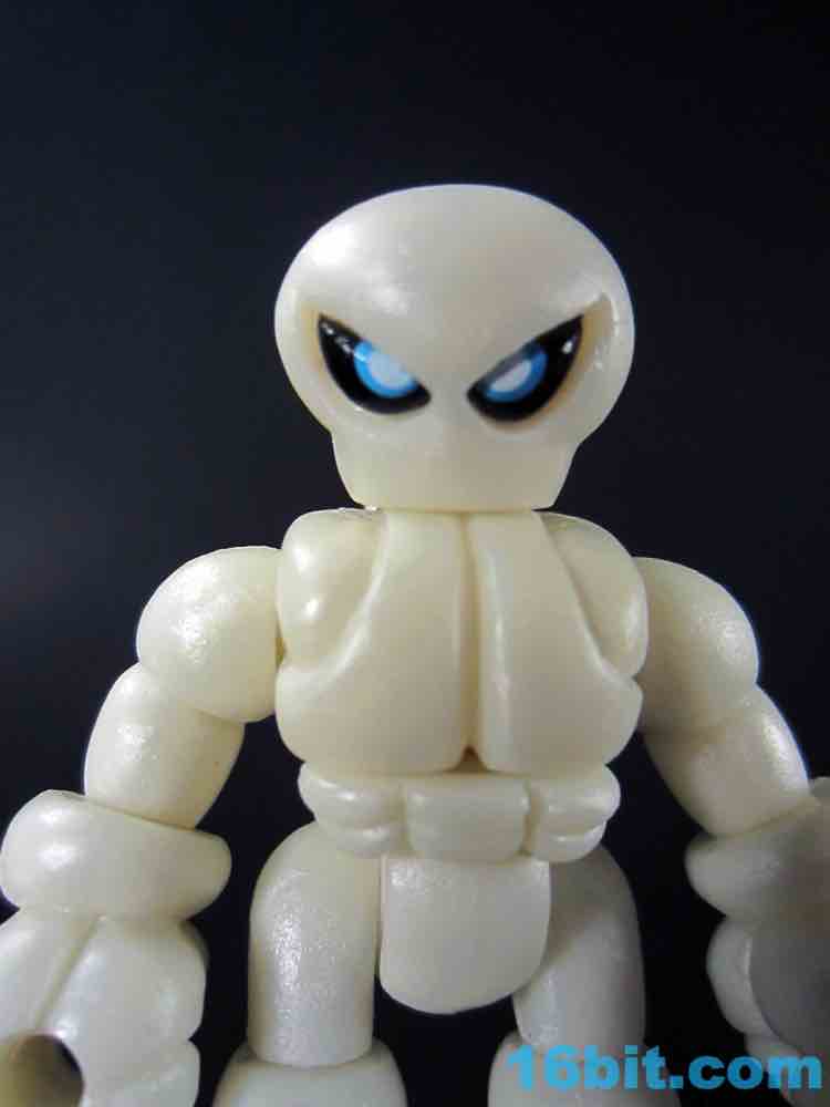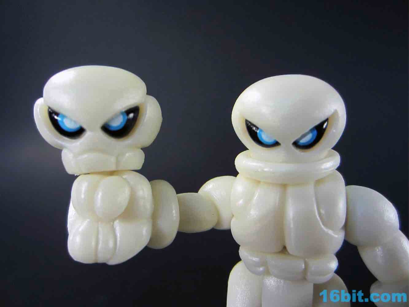I find it odd that Onell Design wouldn't exploit a new figure like this one by, you know, selling it at full price. I suspect that this is the best freebie figure you'll get from any company all year long. I'm eager to see what color configurations happen - maybe a yellow and green would be nice - and the figure looks like the basis for something truly wonderful later. Noboto currently exists in clear colorless plastic or this metallic white "Ivorinium" flavor, either of which is going to look great. His black eyes have a little blue and a dot of white, and Onell Design promises another run of Noboto in these colors in the future. I really like this guy, and at 2 1/3-inches high he's a full head shorter than Pheyden. I'll definitely buy one or two more in other colors in the future. Get one, you'll like it.